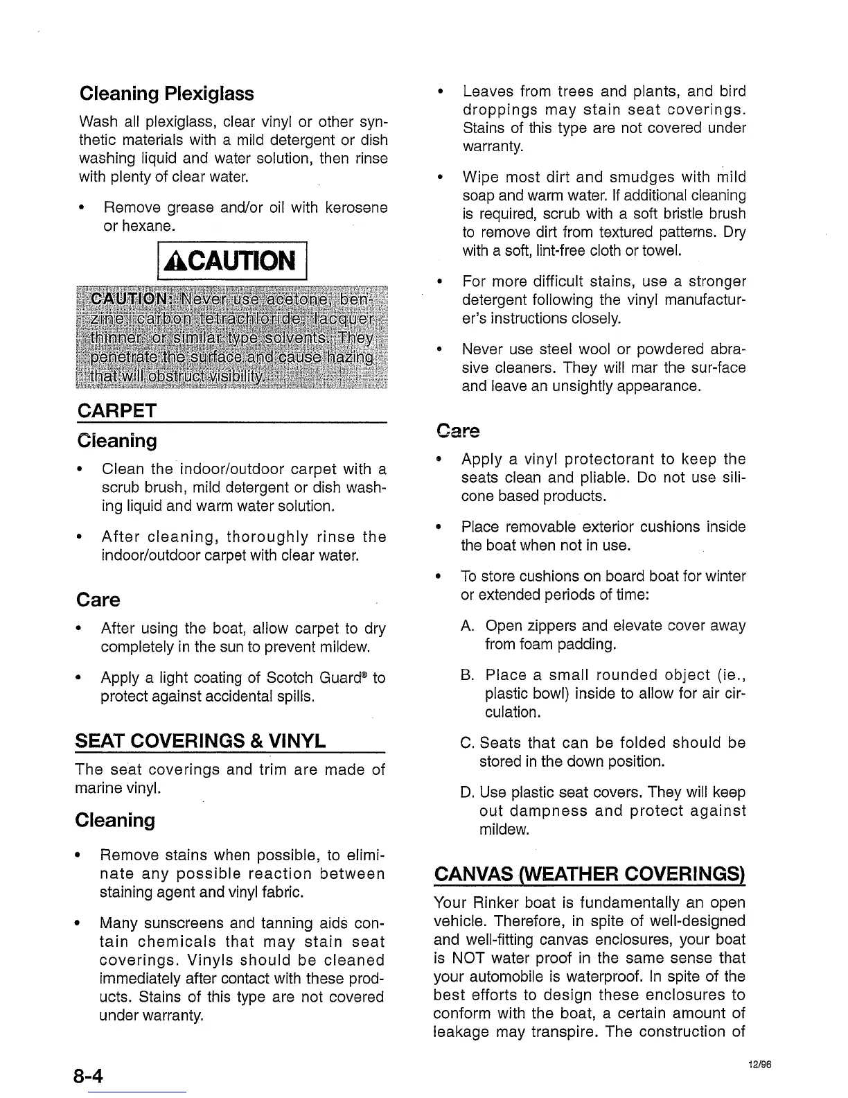 Rinker Cruisers - Carpet; Seat Coverings & Vinyl; Canvas (Weather Coverings); Cleaning Plexiglass