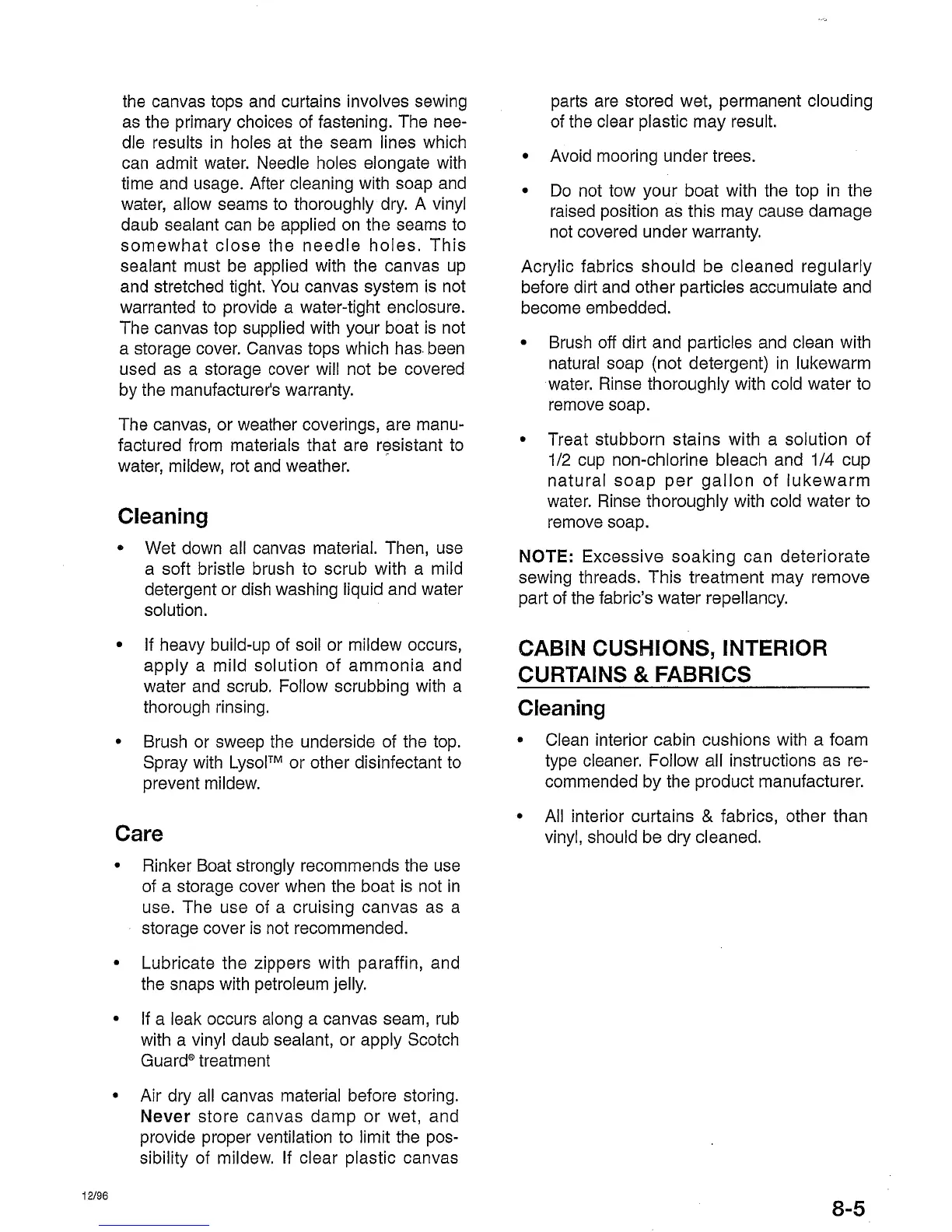 Rinker Cruisers - Cabin Cushions, Interior Curtains & Fabrics