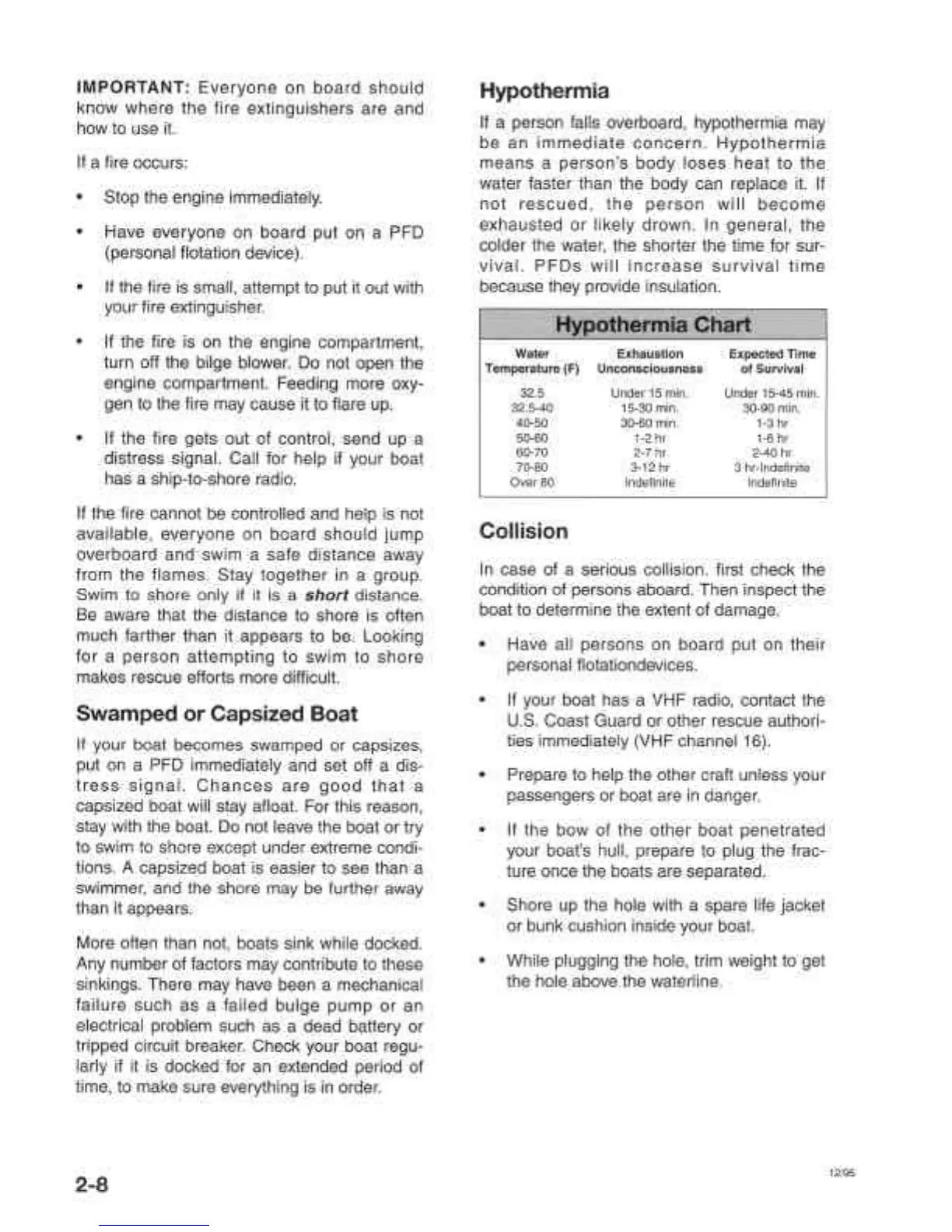 Rinker Runabouts - Swamped or Capsized Boat; Hypothermia; Collission; Hypothermia Chart
