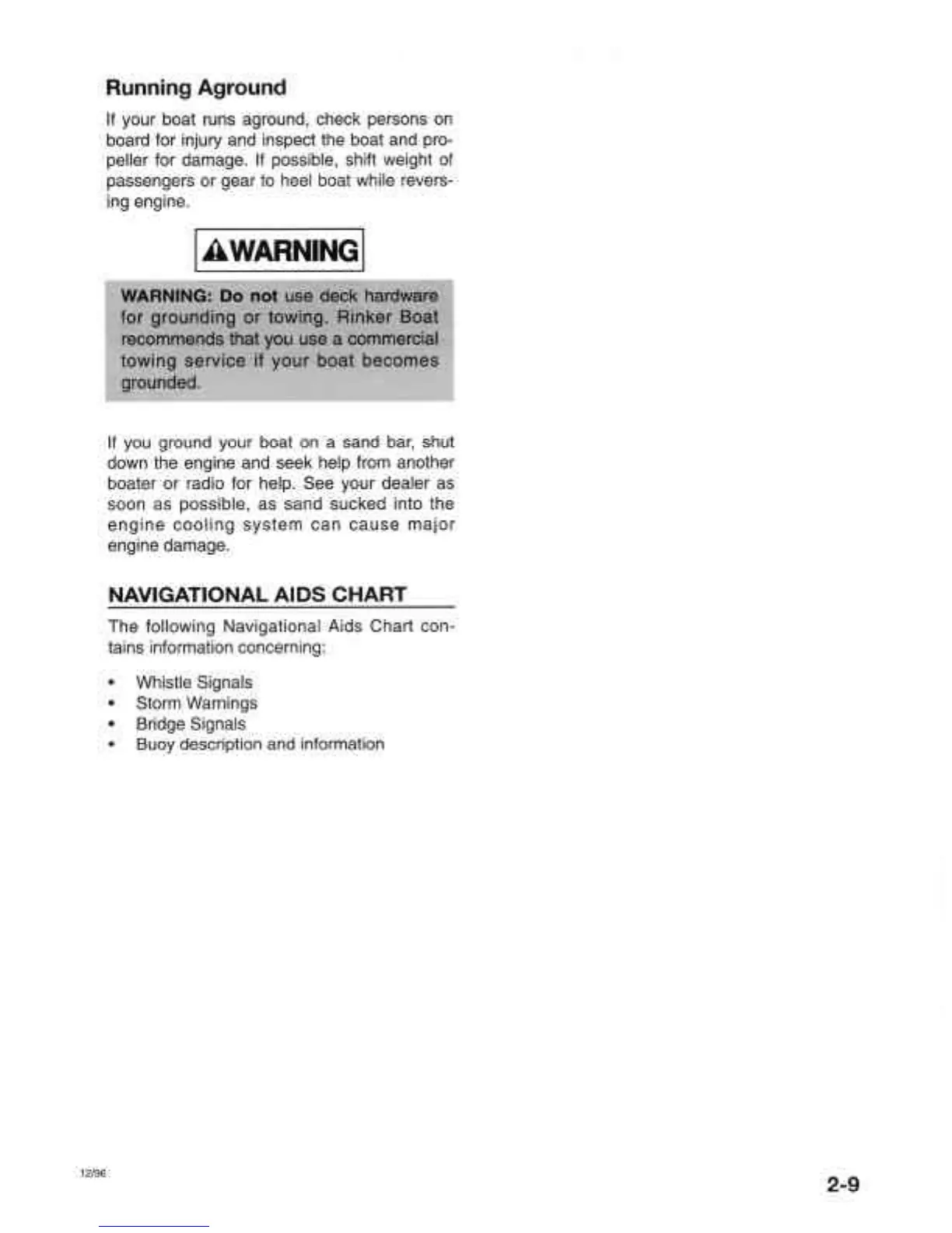 Rinker Runabouts - Navigation Aids Chart; Running Aground