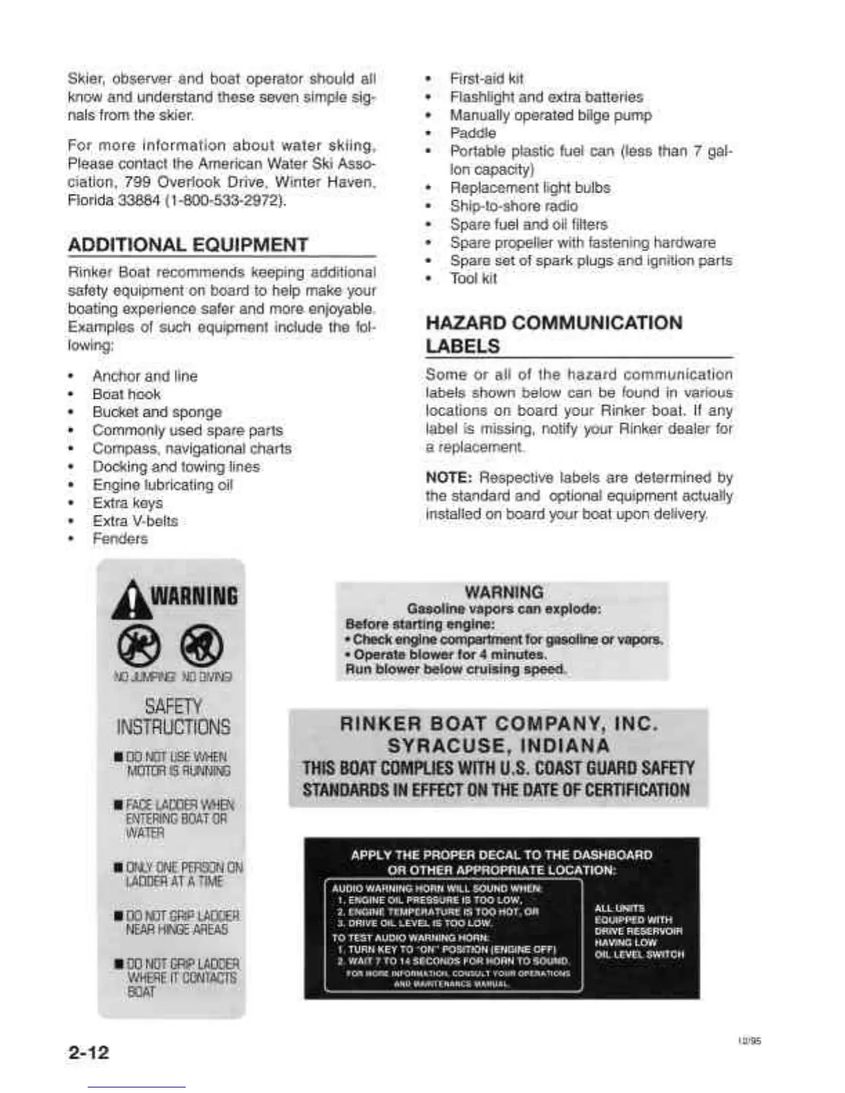 Rinker Runabouts - Additional Equipment; Hazard Communication Labels