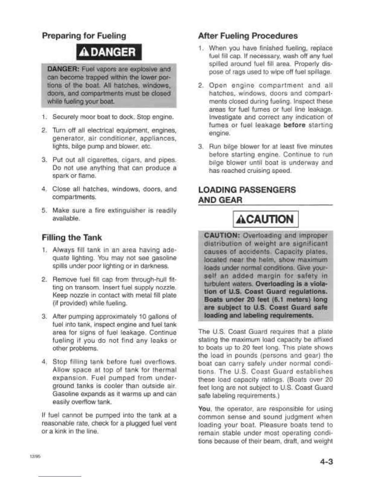 Rinker Runabouts - Loading Passengers and Gear; Preparing for Fueling; Filling the Tank; After Fueling Procedures