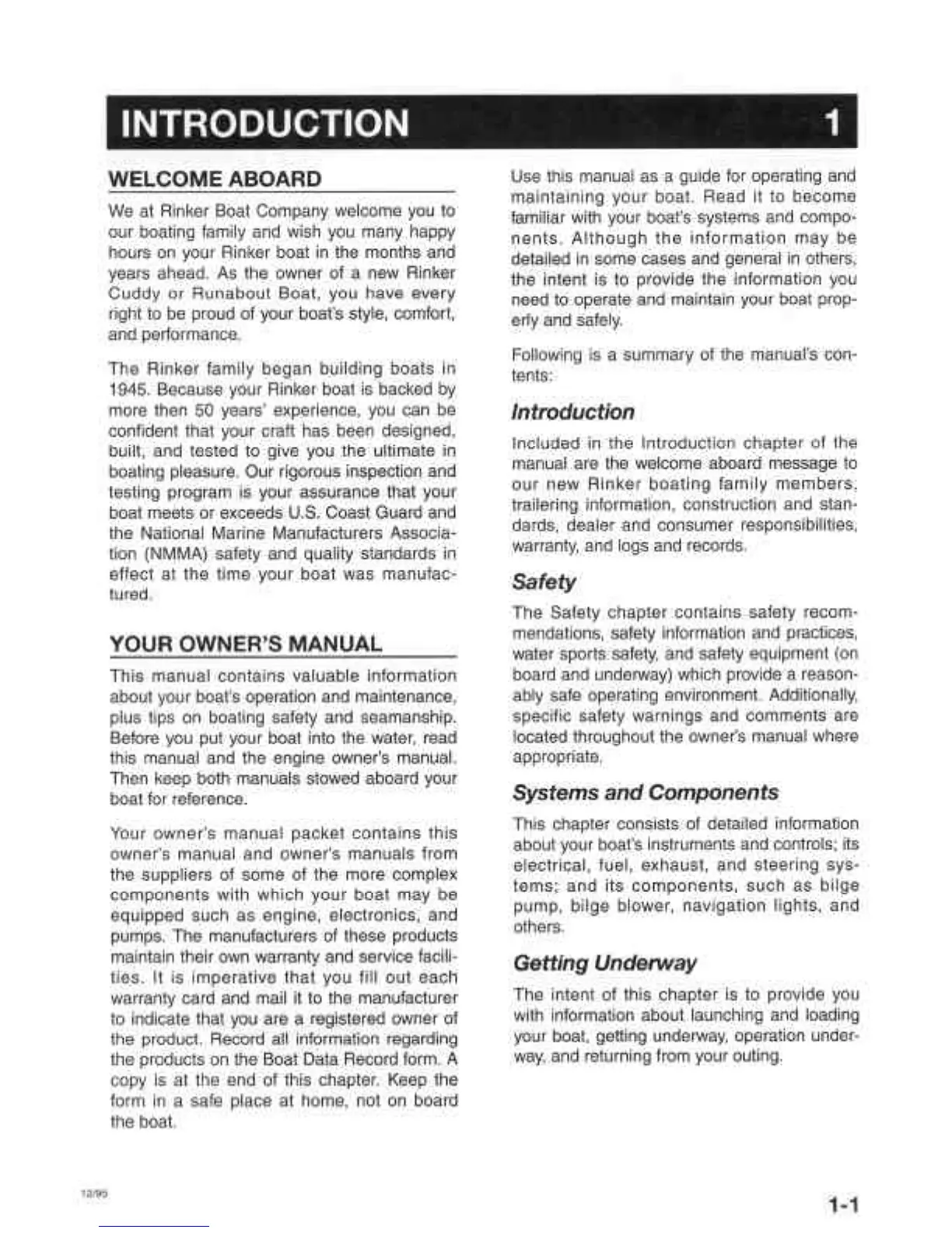 Rinker Runabouts - Introduction; Safety; Systems and Components