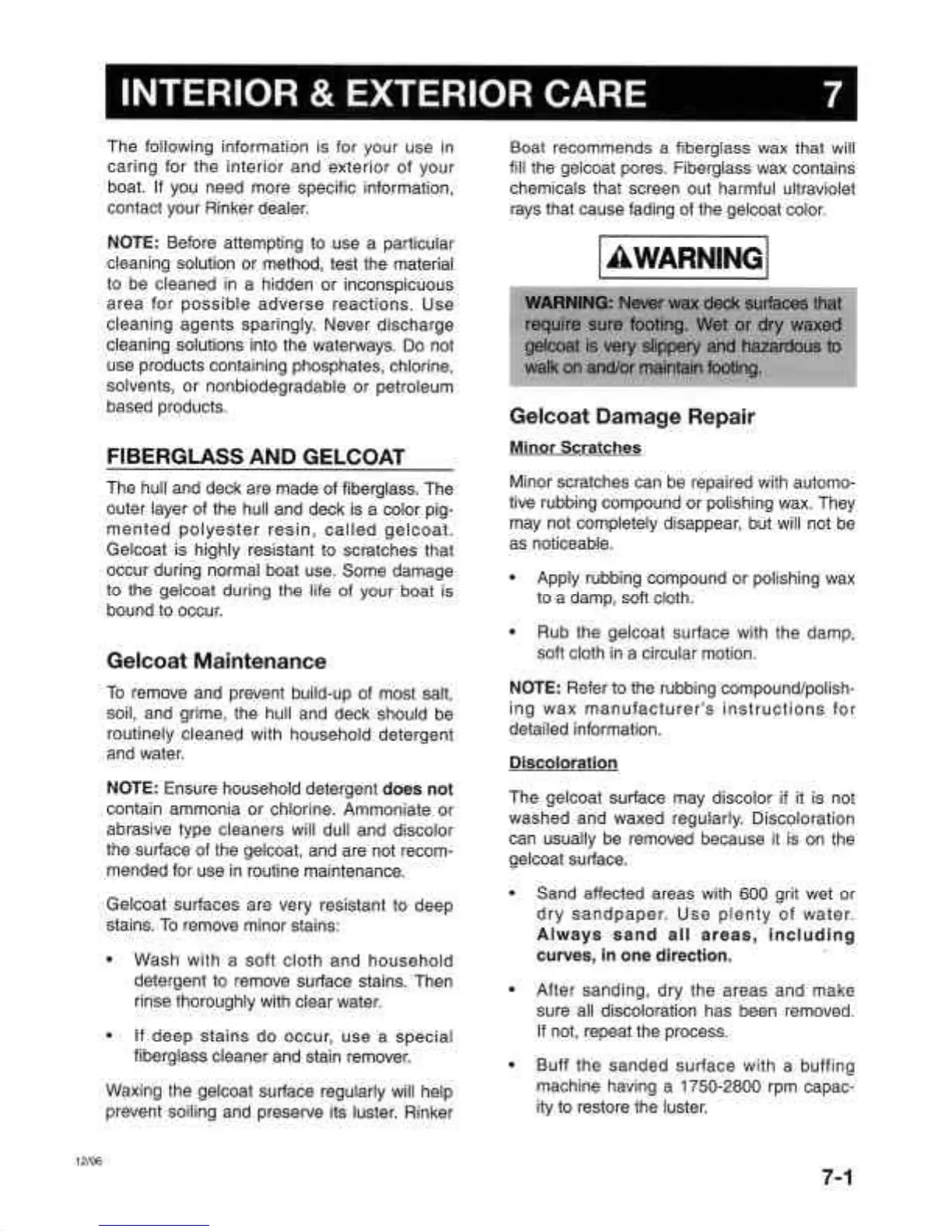 Rinker Runabouts - Interior & Exterior Care; Fiberglass and Gelcoat; Gelcoat Maintenance; Gelcoat Damage Repair
