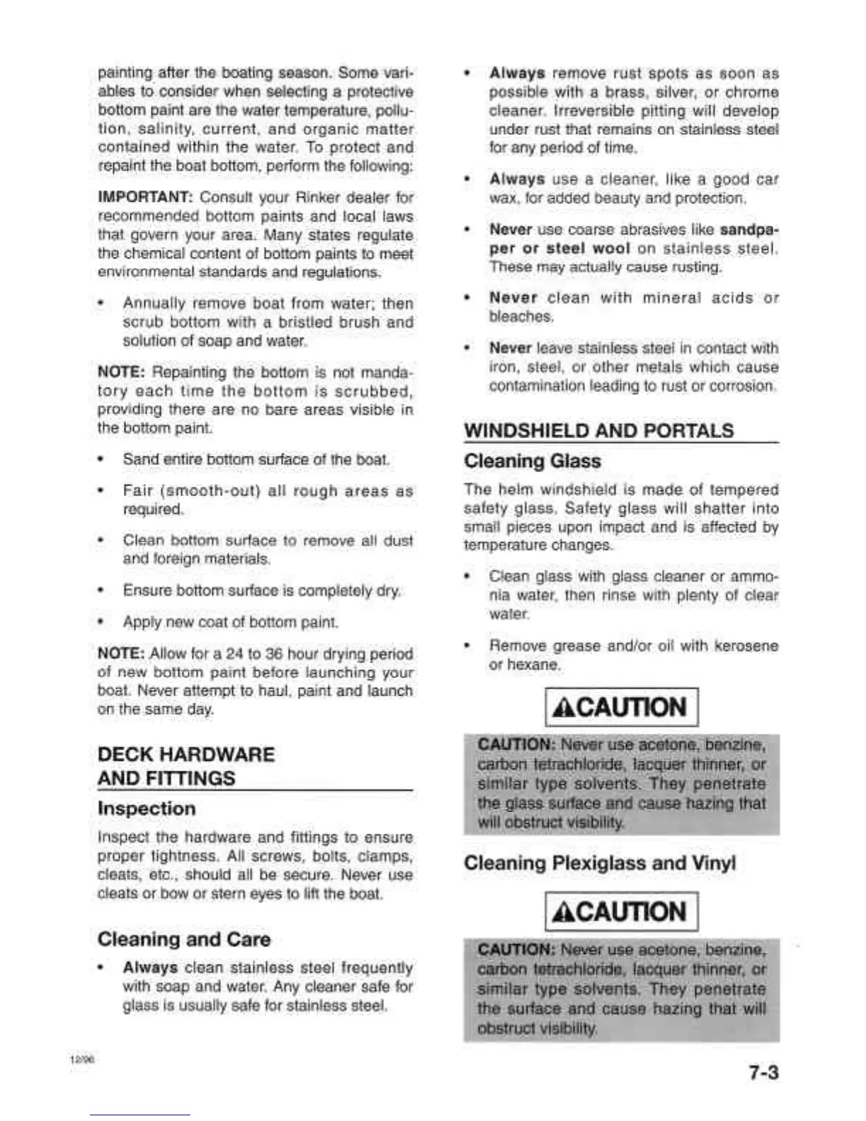 Rinker Runabouts - Deck Hardware and Fittings; Windshield and Portals; Cleaning and Care; Cleaning Glass