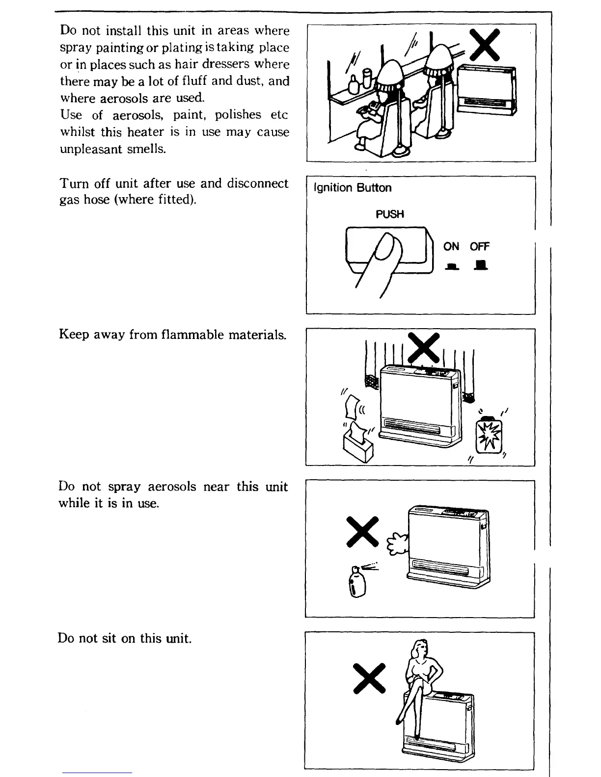 Rinnai 412 - General Safety and Usage Warnings; Installation Environment and Usage Precautions
