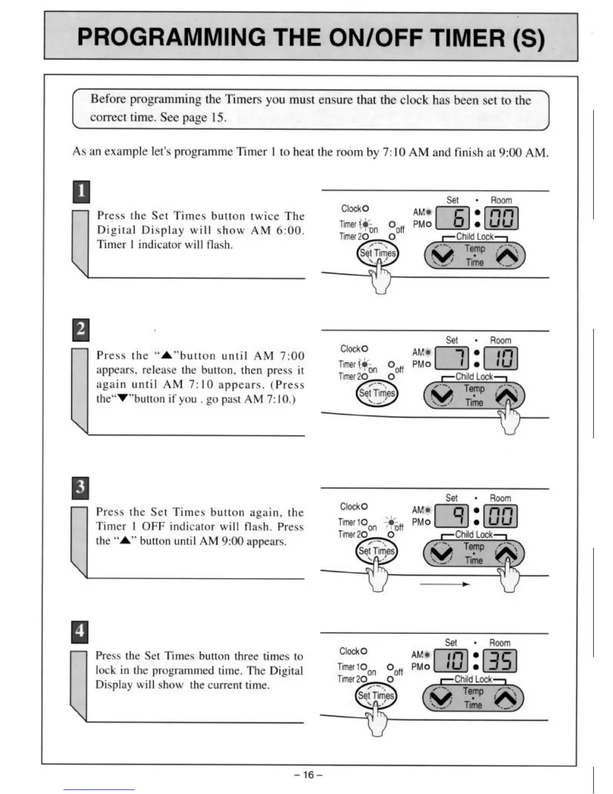 Rinnai 560 PTR - Programming the On;Off Timer