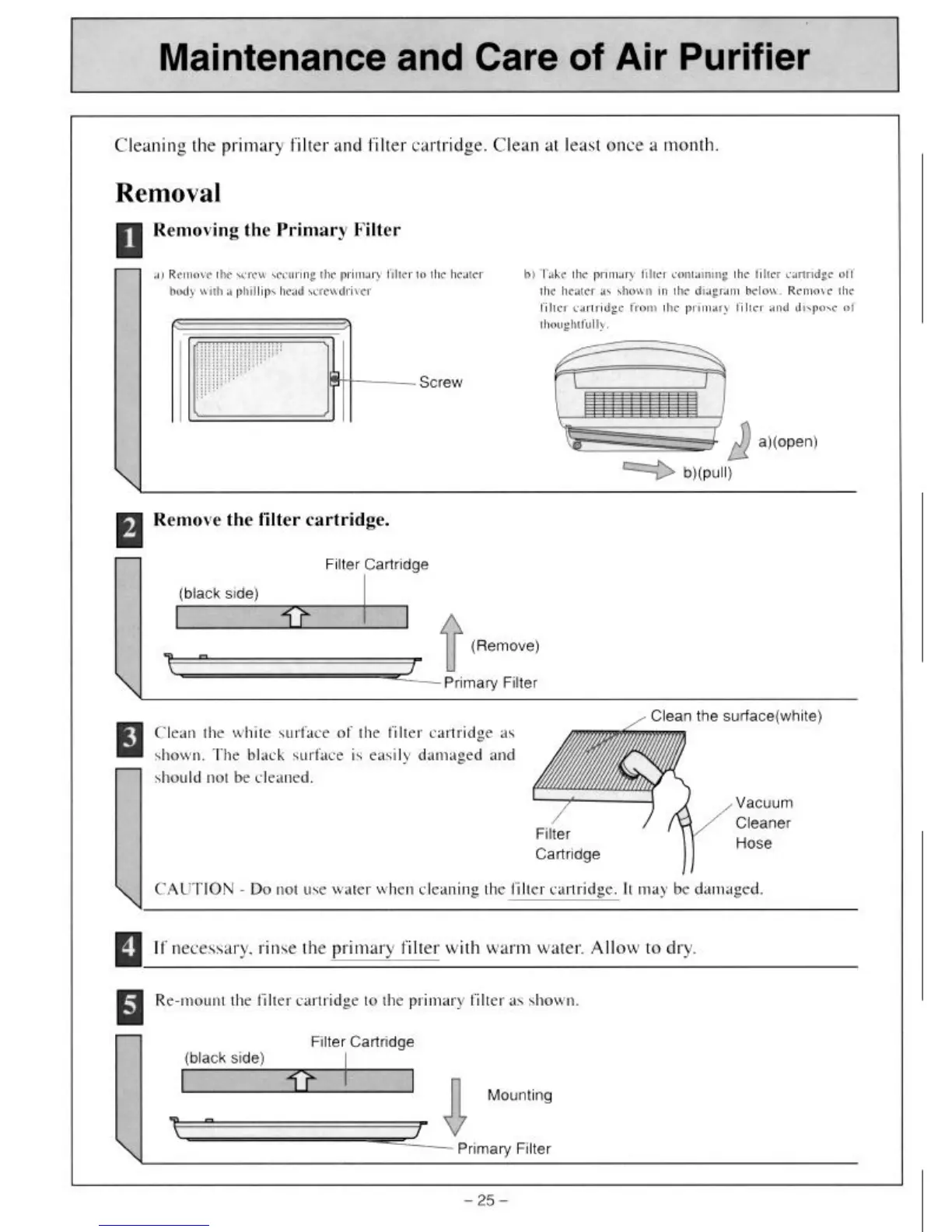 Rinnai 560 PTR - Maintenance and Care; Removing the Primary Filter; Remove the Filter Cartridge