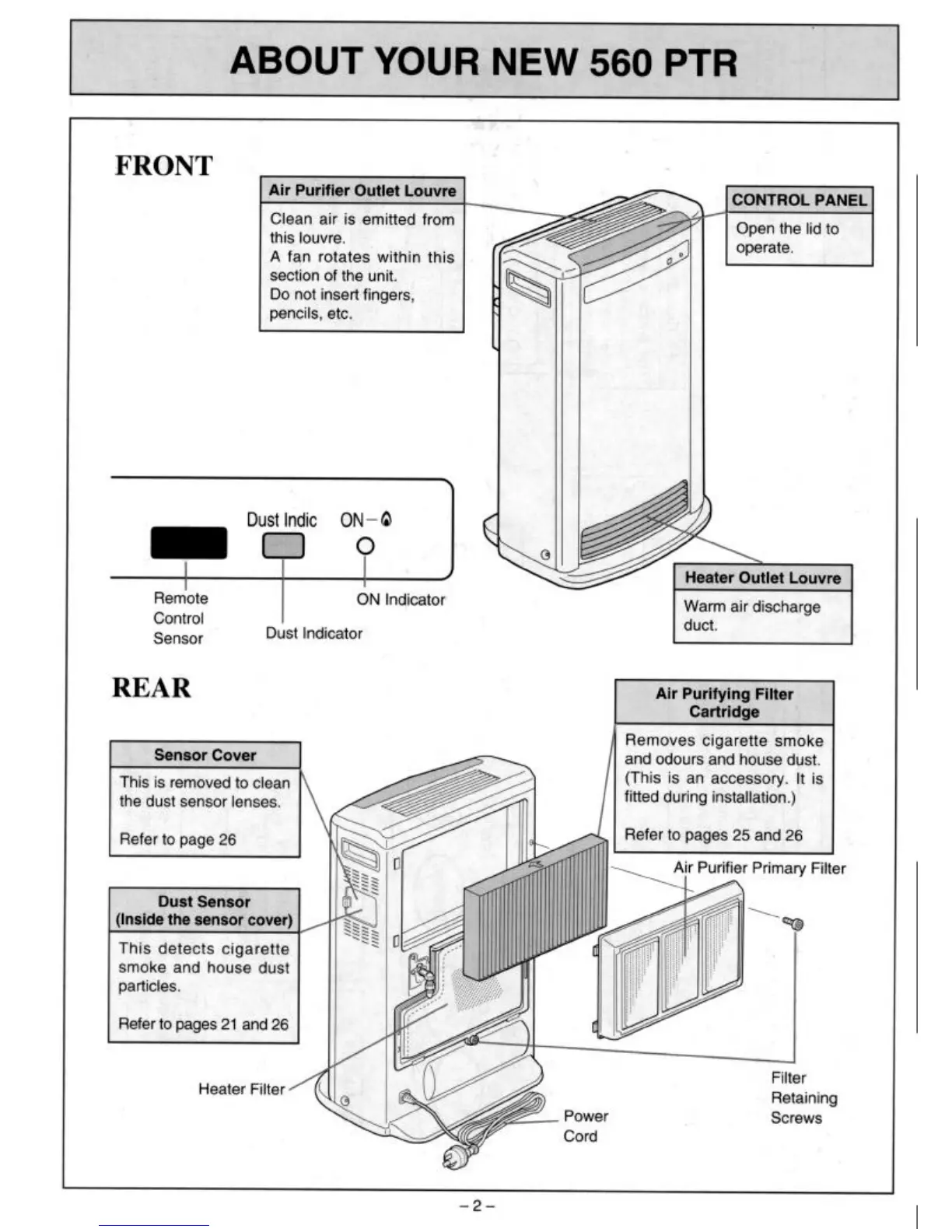 Rinnai 560 PTR - ABOUT YOUR NEW 560 PTR; FRONT Panel Components; REAR Panel Components