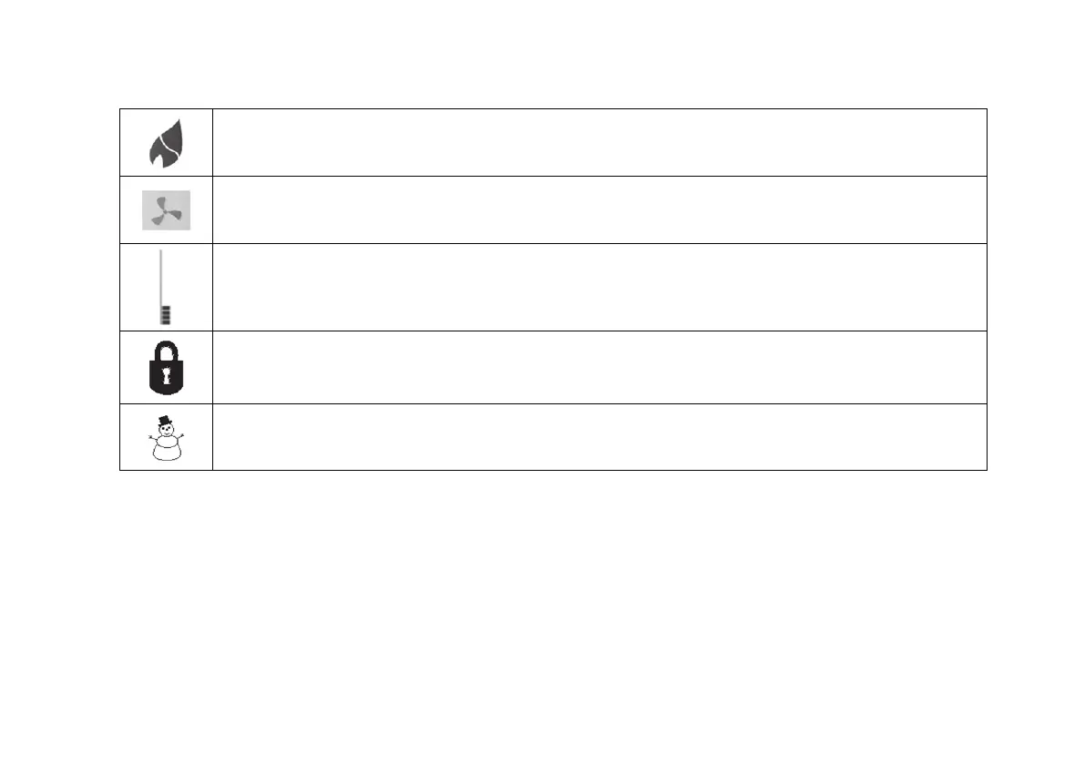 The flame symbol will appear on the display when the heater is switched on. This symbol will flash during cool down