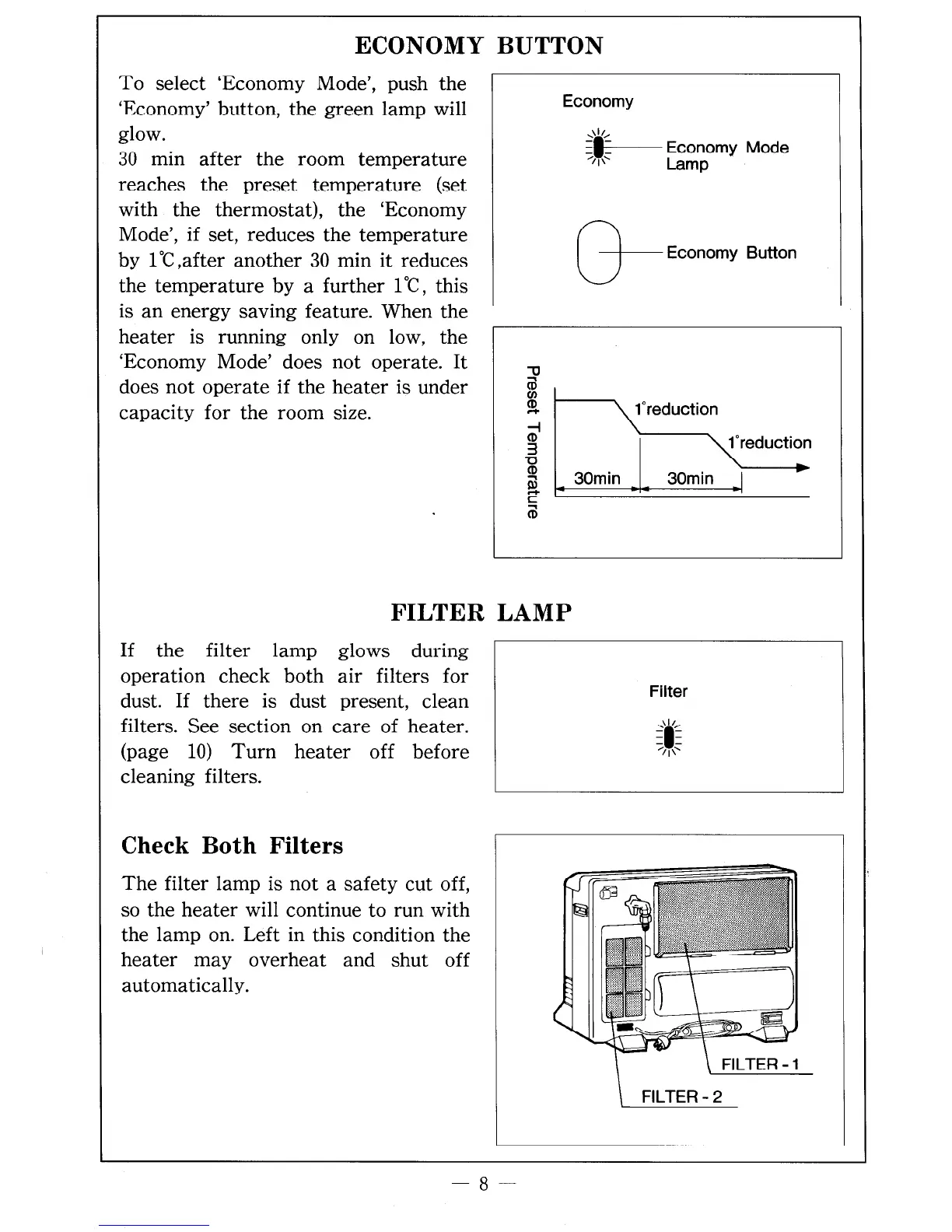 filters. See section on care of heater.