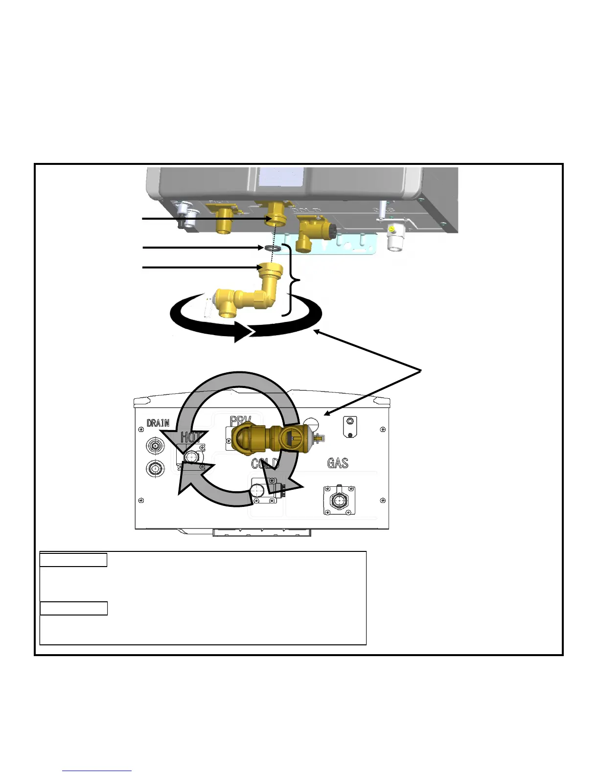 1. On the boom of the tankless water heater, hand ghten the Pressure Relief Valve Assembly and Gasket to