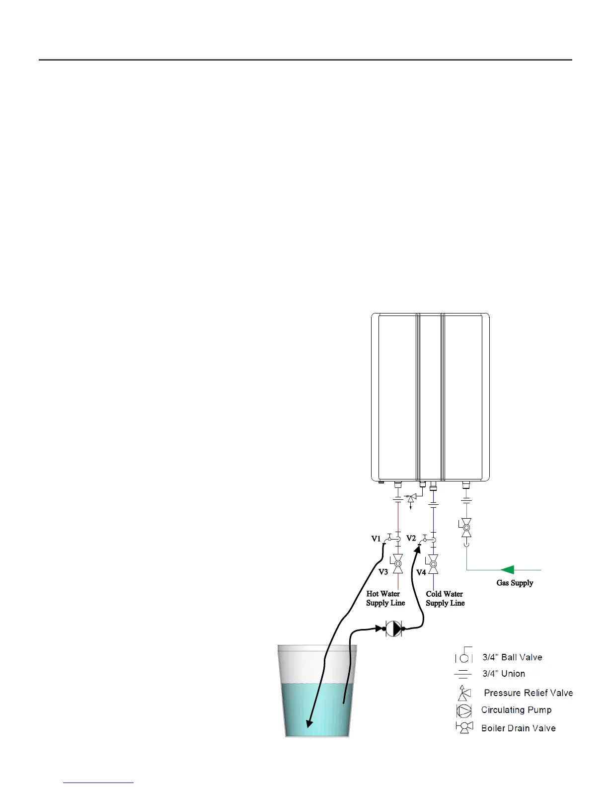 8. Open both service valves (V1 and V2) on the hot water