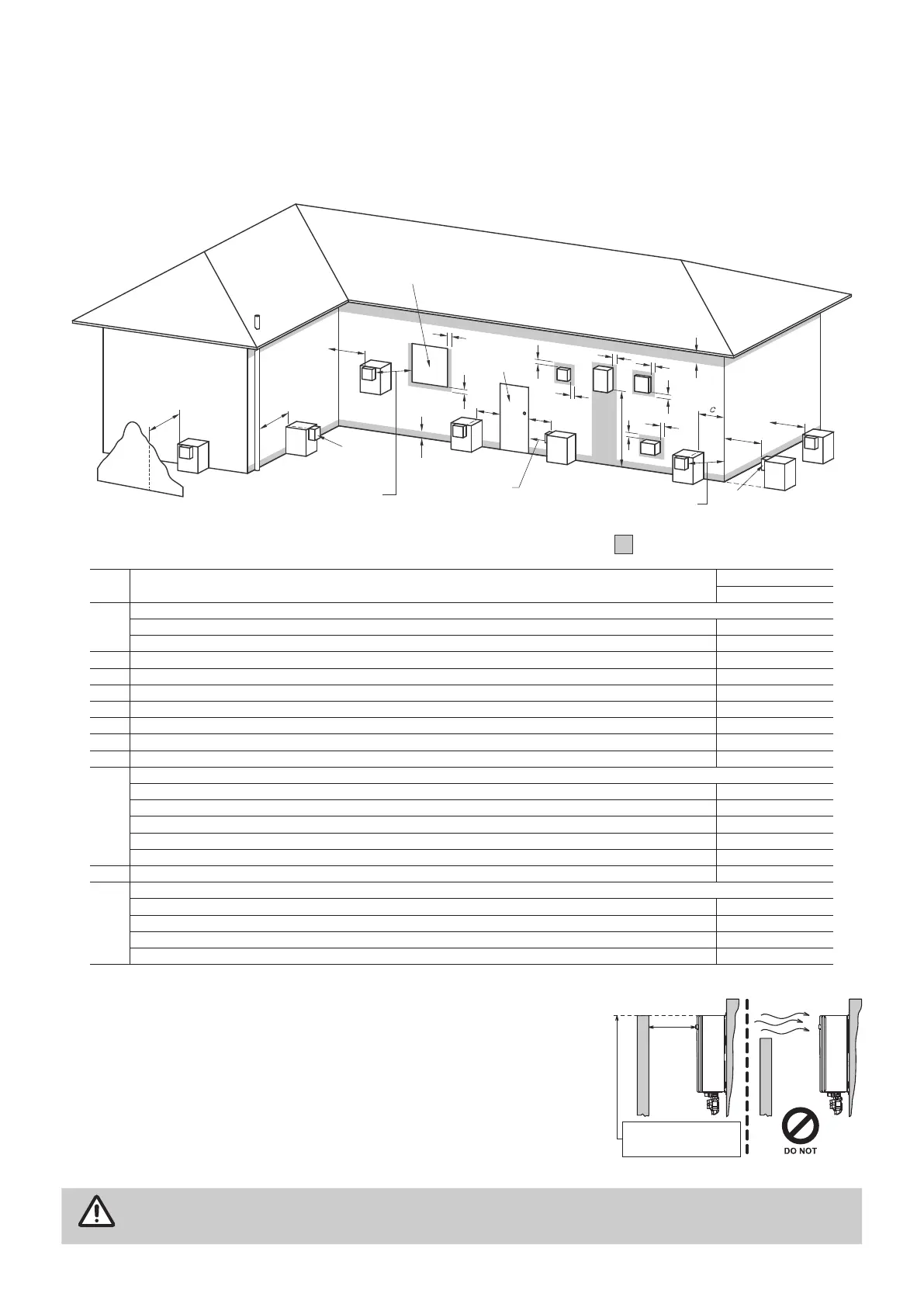 † Prohibited area below electricity meter or fuse box extends to ground level.