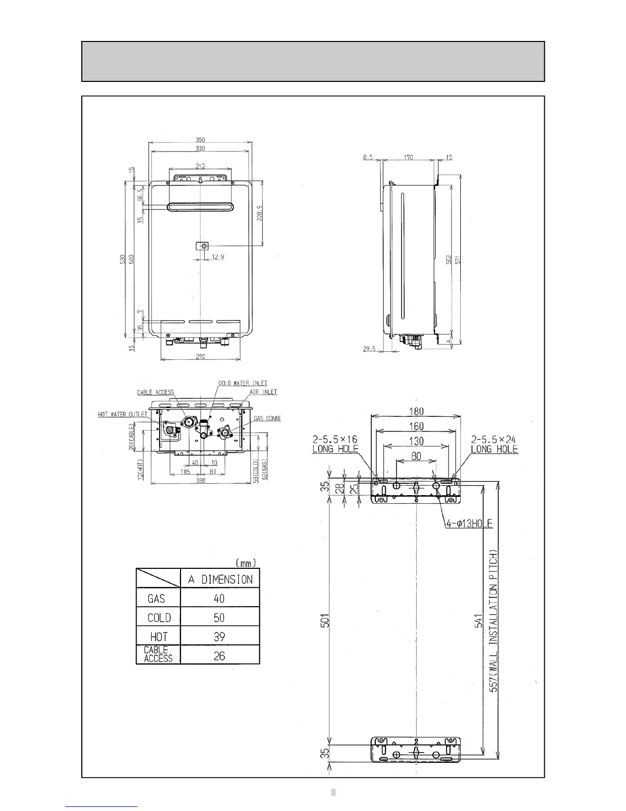 Rinnai Infinity 20e - Dimensions