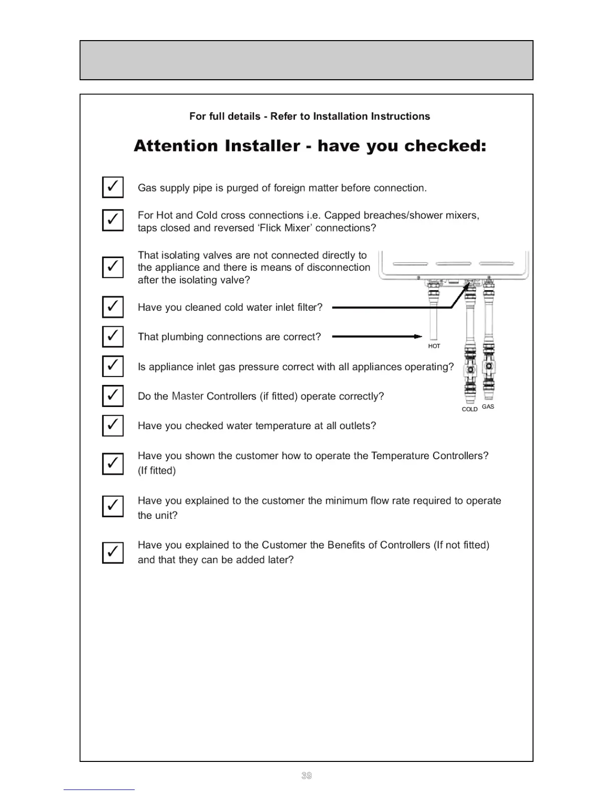 Rinnai Infinity 24e - Commissioning Check List