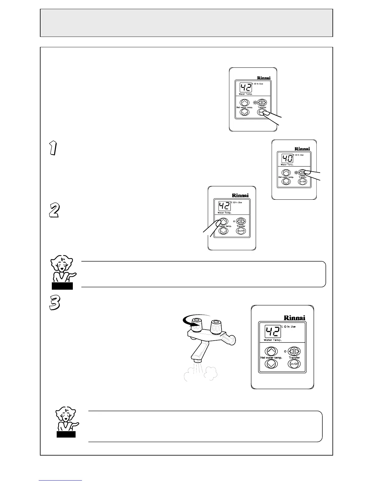 When any hot water tap is open, temperature can not be adjusted except between 37º C and 43º C.