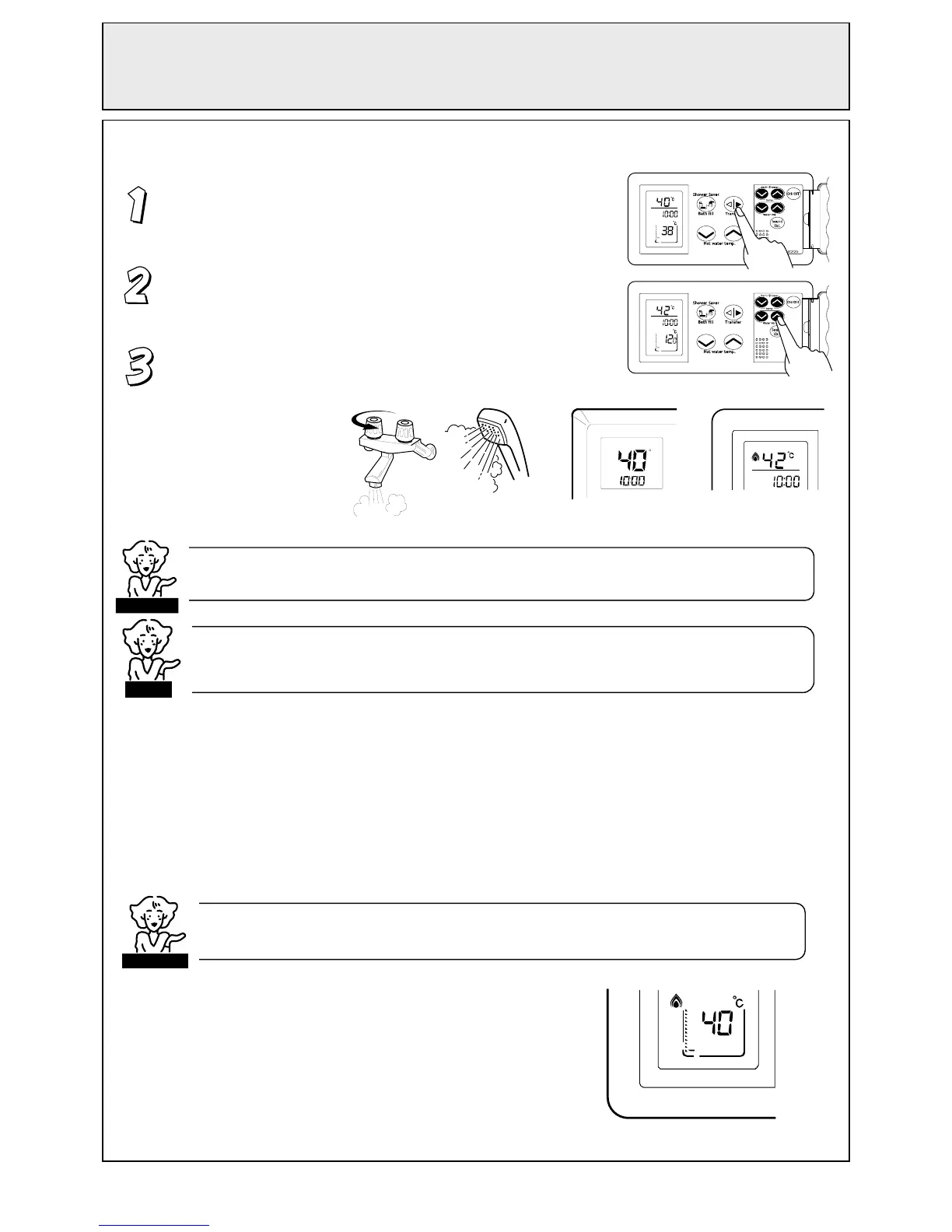 Step 1. Program the shower / bath volume and temperature into the Bathroom