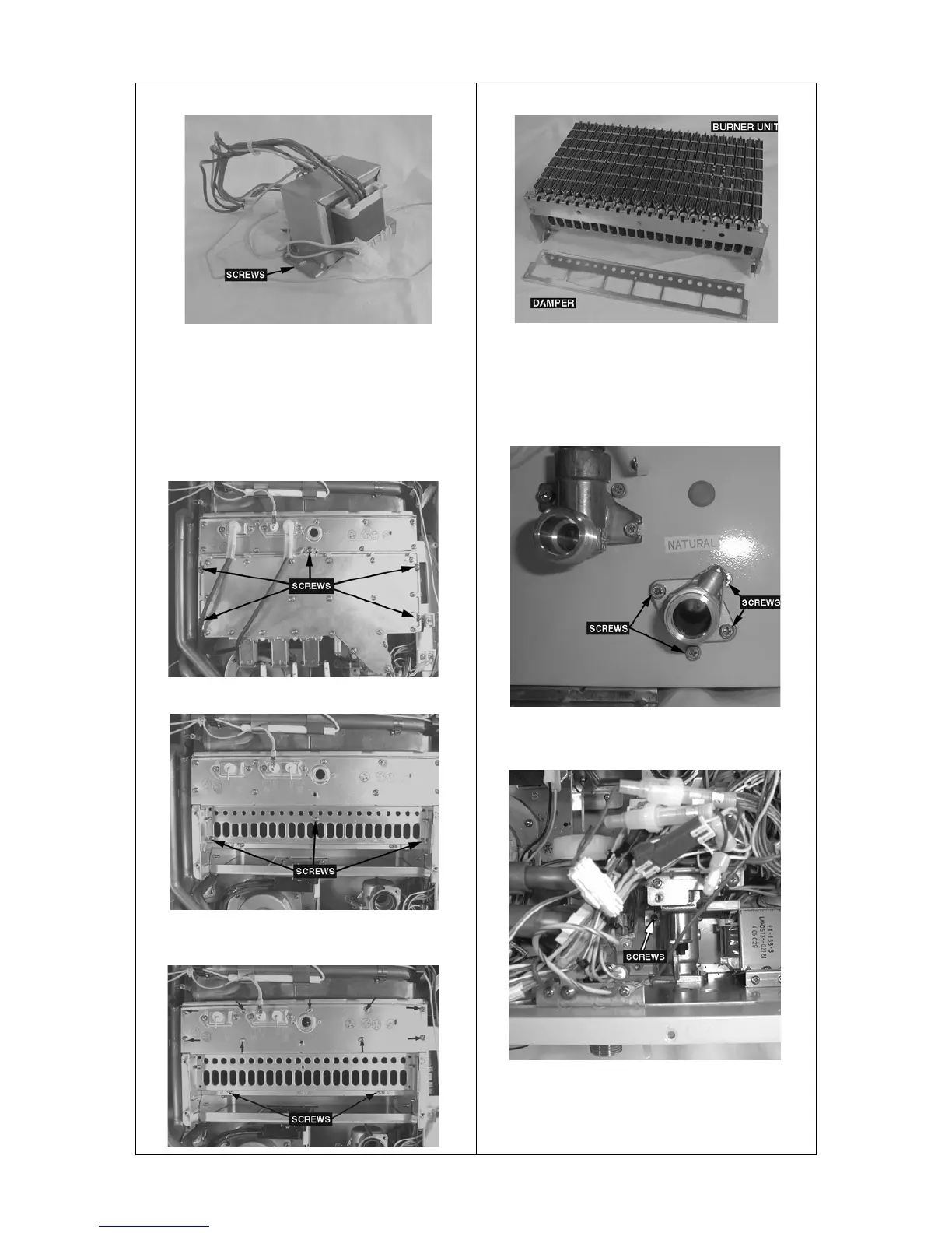 f. Remove two (2) burner retaining screws, then remove