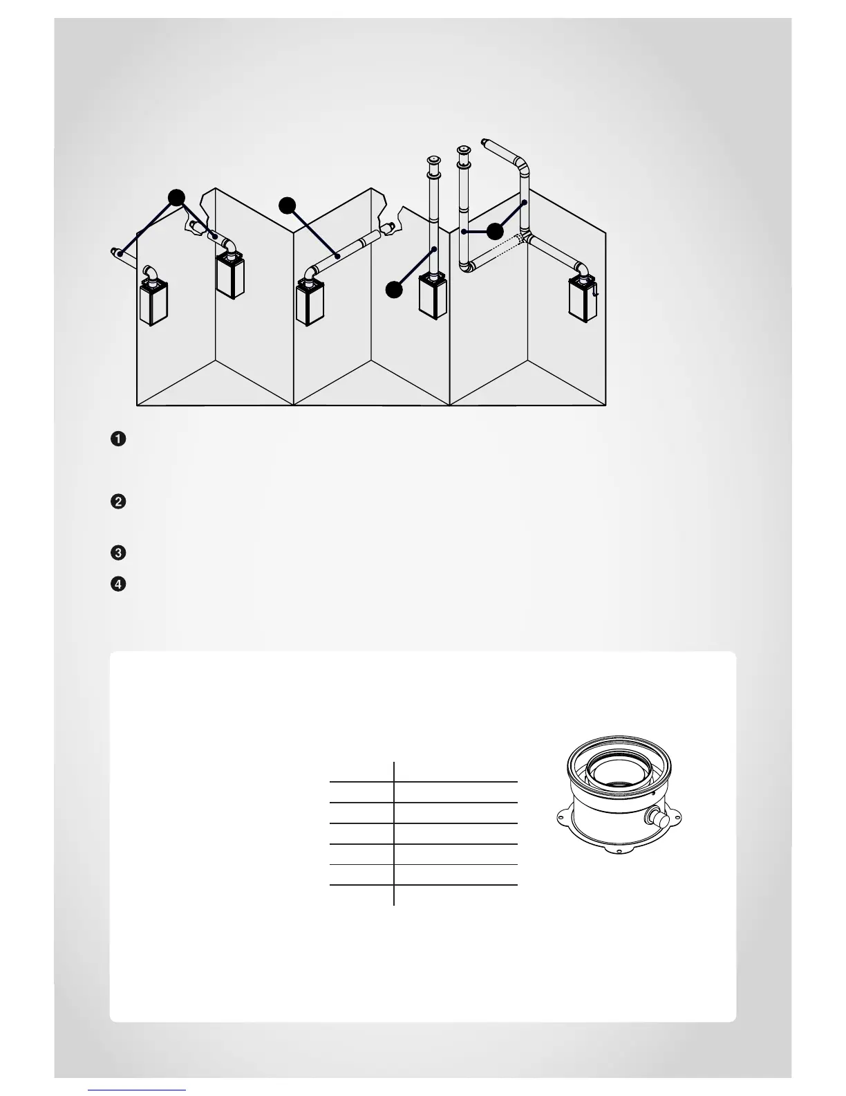 Horizontal extension flueing: The same as direct flueing with additional pipe required due to the