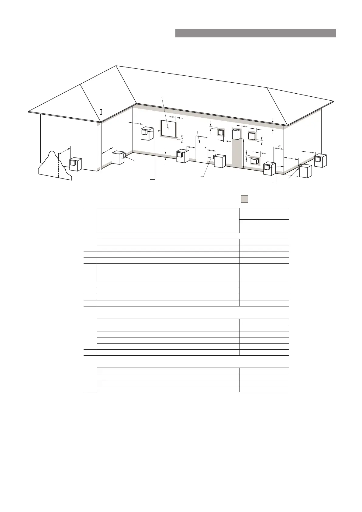 † Prohibited area below electricity meter or fuse box extends to ground level.