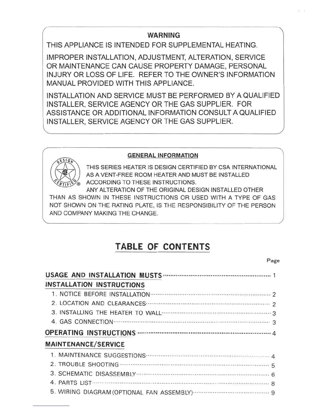 Rinnai REH-20DT - Table of Contents