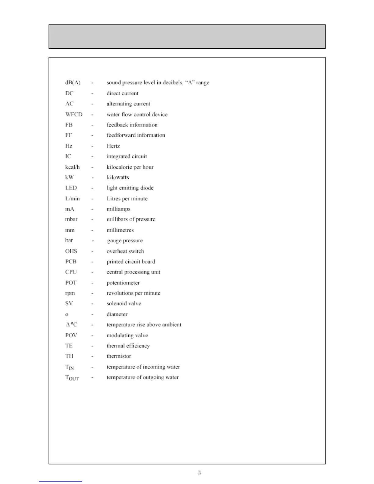 Rinnai REU-16 - Glossary of Terms and Symbols