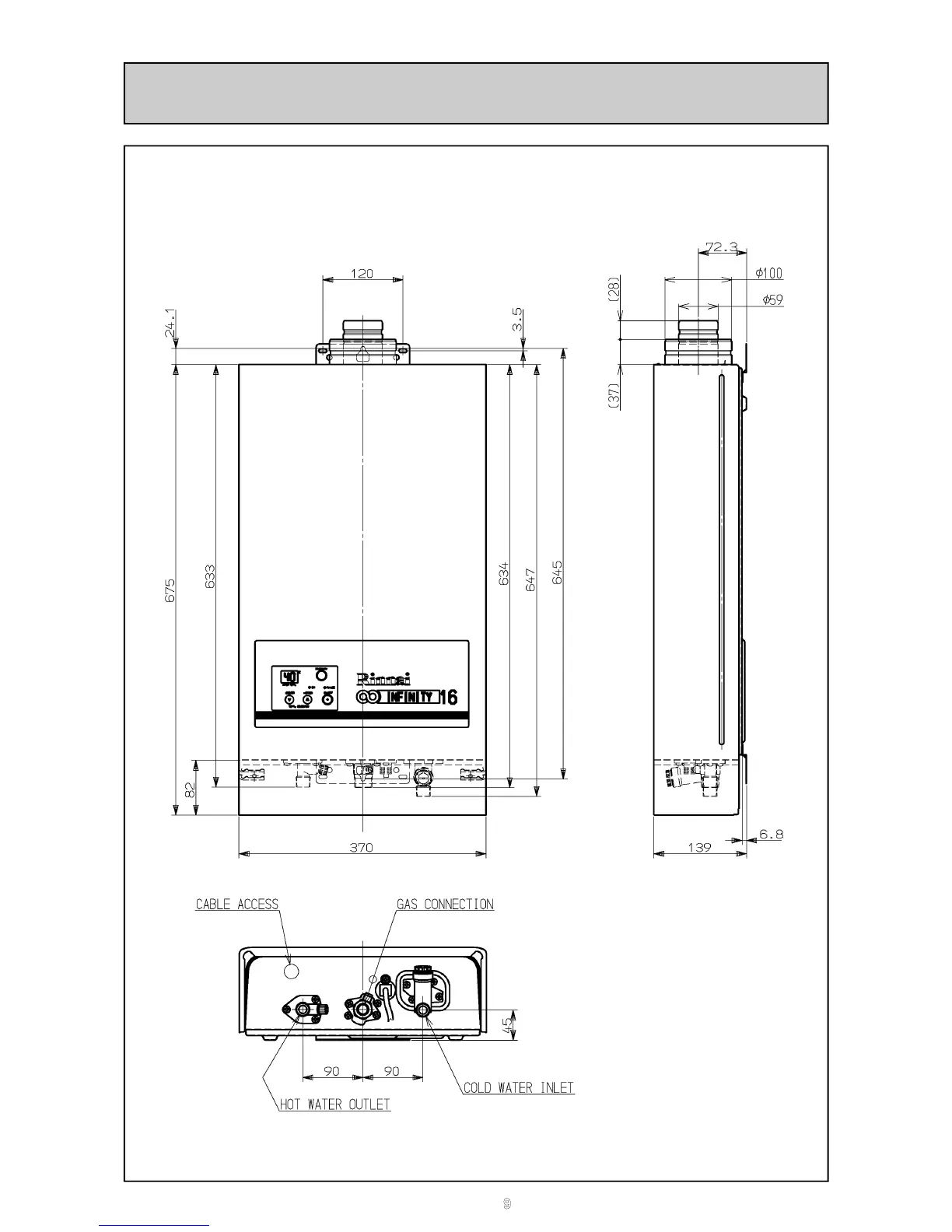 Rinnai REU-16 - Dimensions
