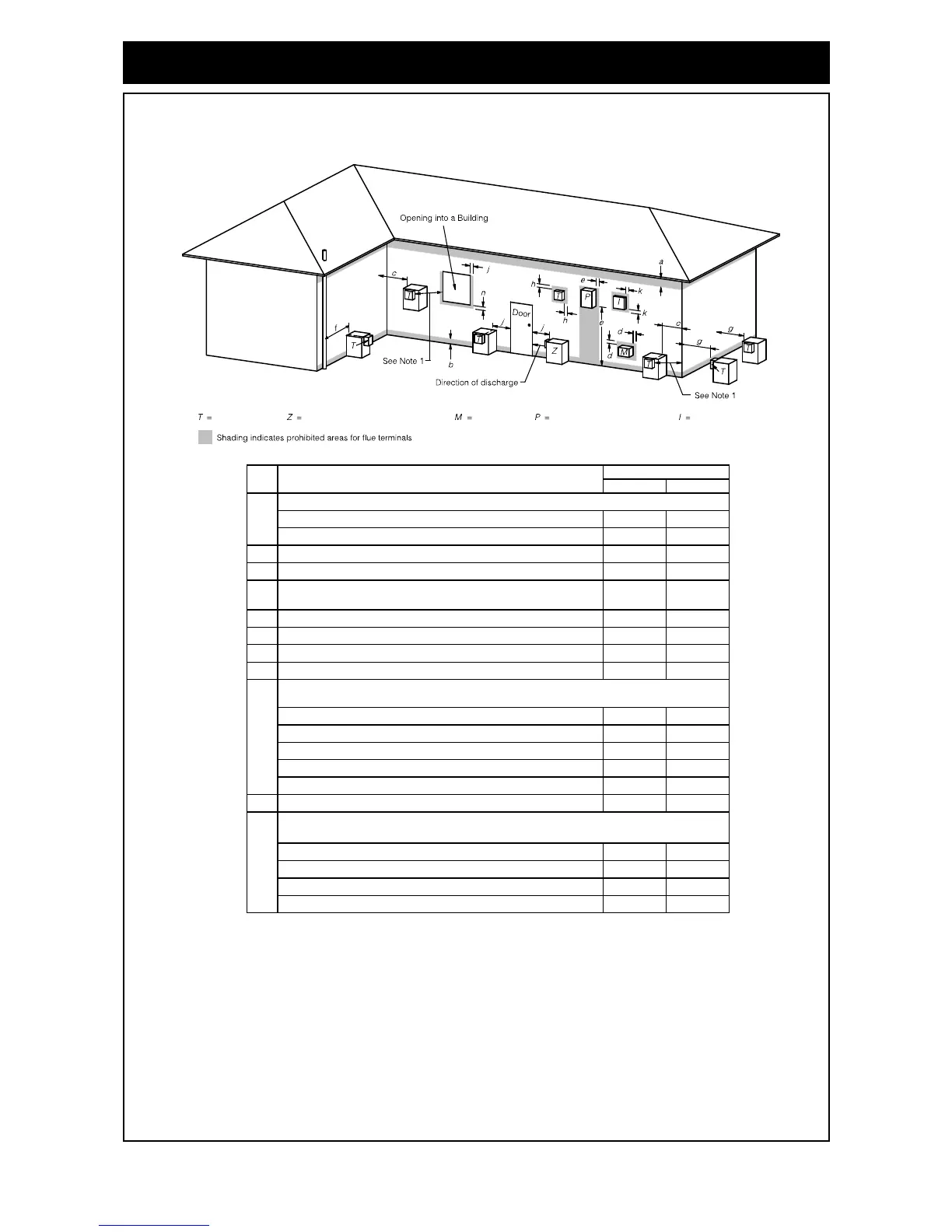 FIGURE 6.2 (in-part) MINIMUM CLEARANCES REQUIRED FOR BALANCED FLUE TERMINALS, FAN-ASSISTED