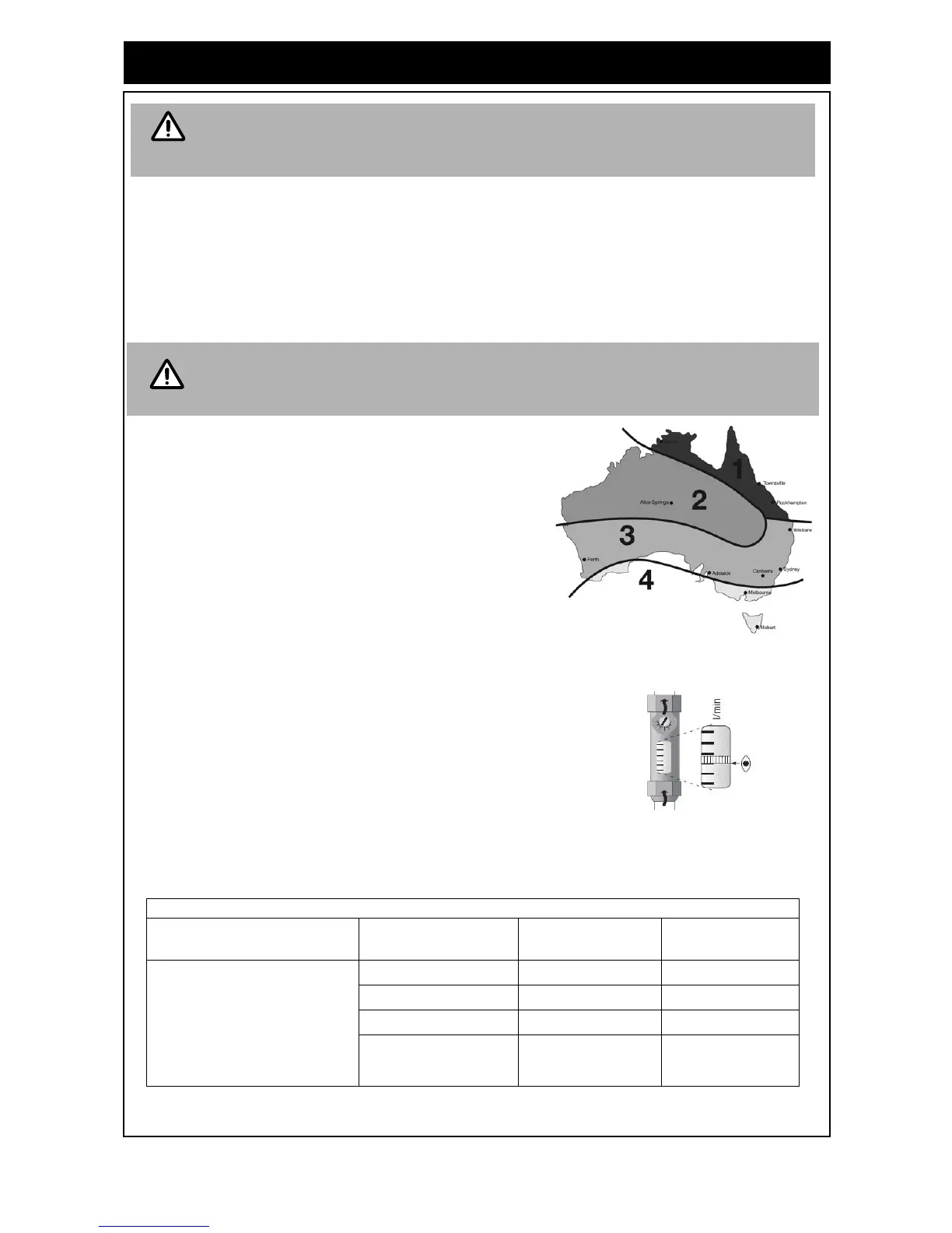 The installer will need to set the flow rate to the value shown in Table 10 below.