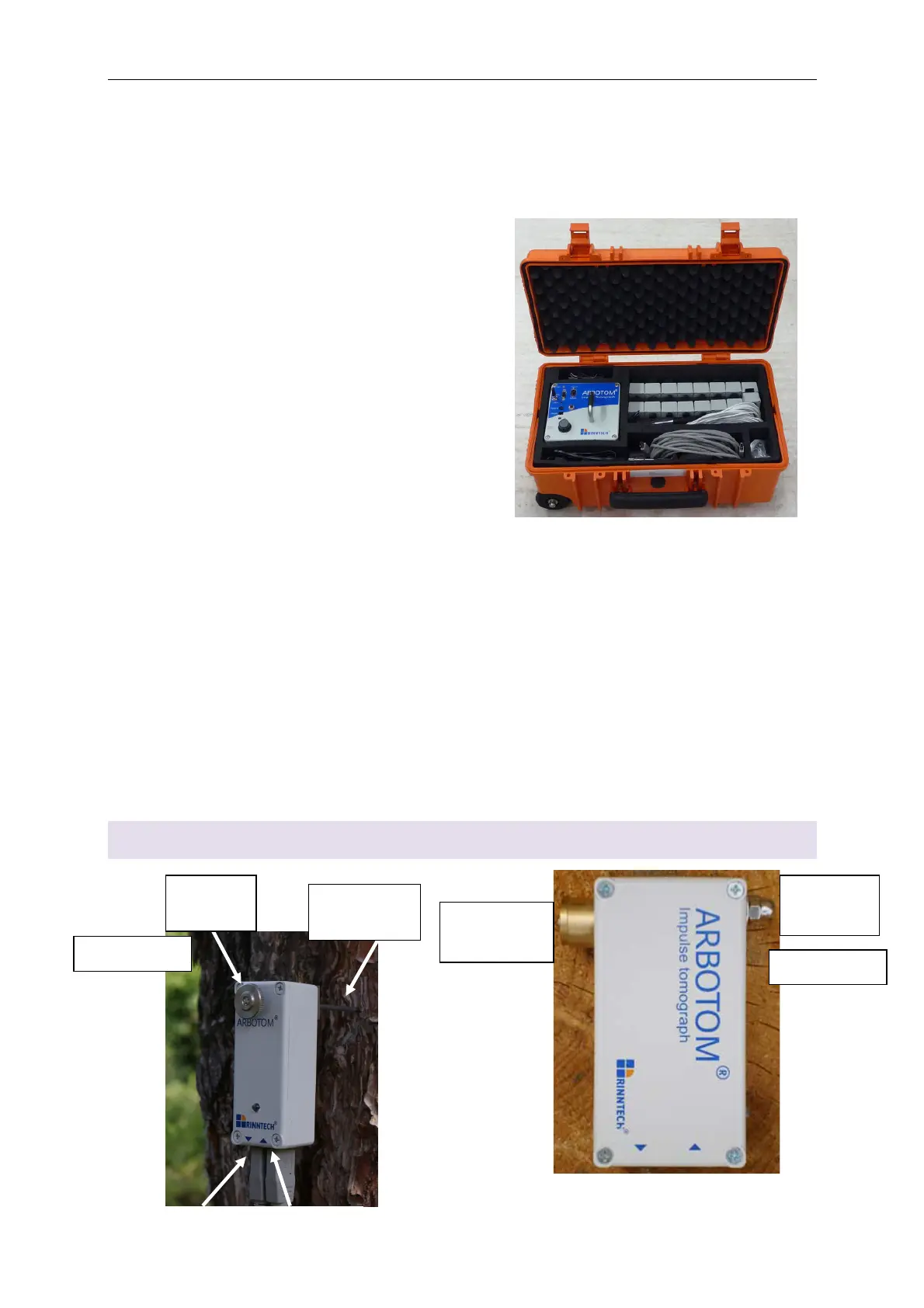 the shock bolt. While measuring the impulse waves are induced into the tree via the shock bolts.
