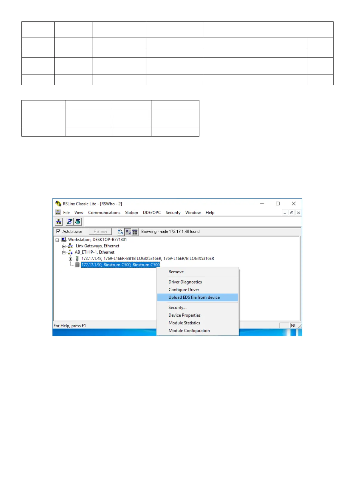 Upload the EDS file from the indicator using RSlinx.