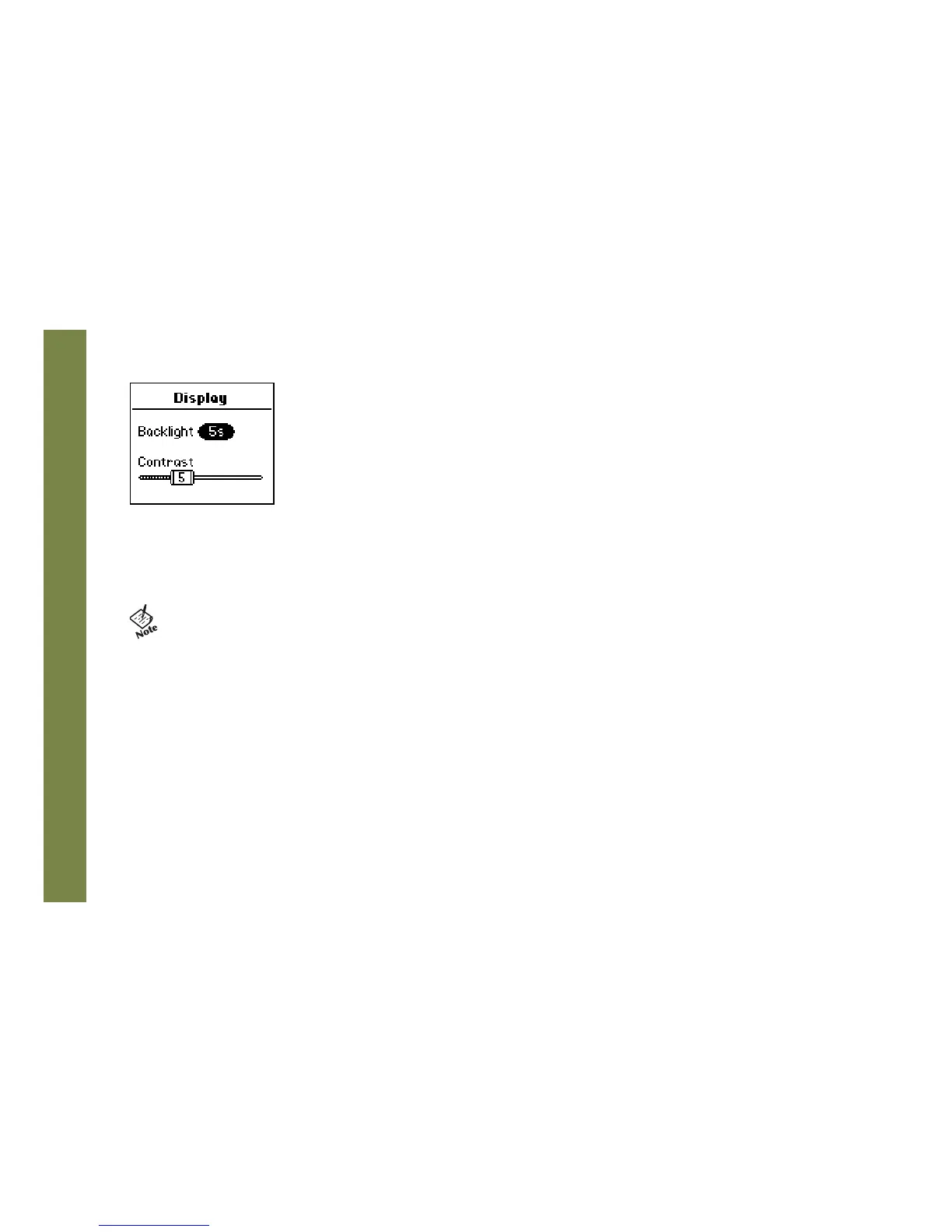 5s, (the default setting) 10s, 20s, and On. On sets the backlight to remain lit constantly.