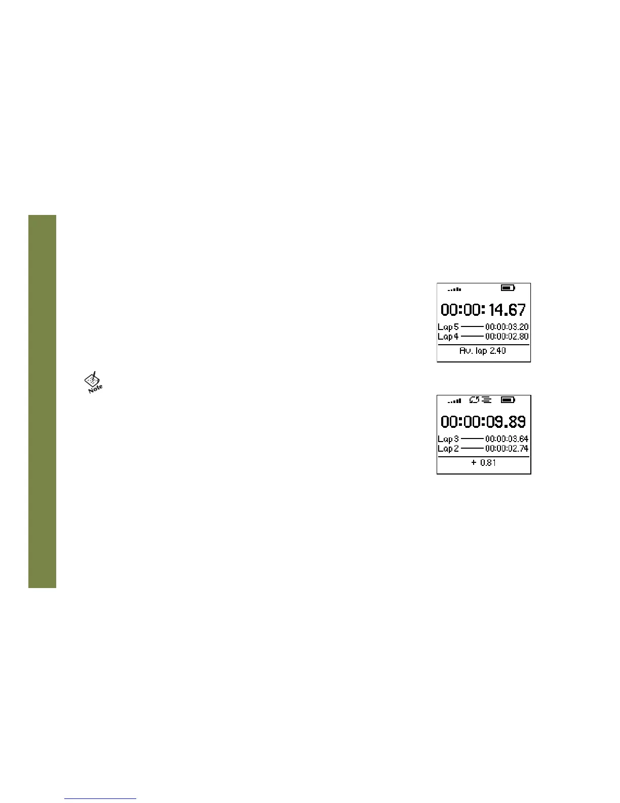 Press to set a lap time. Press and hold to return to single lap display. Multiple