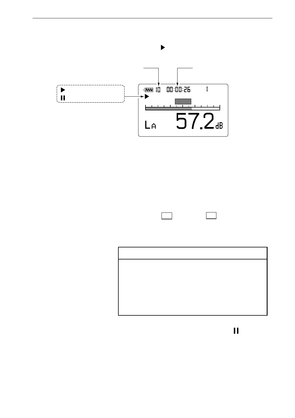 resume the measurement. During pause, the pause symbol ( ) is shown.