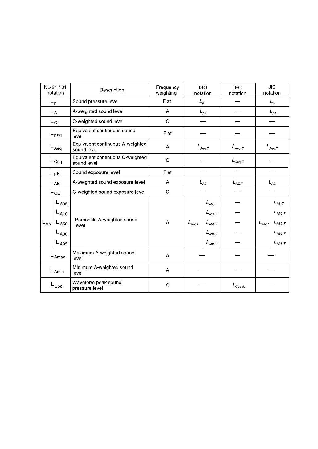 Quantifier Notation of Sound Level Meter NL-21/NL-31 According to