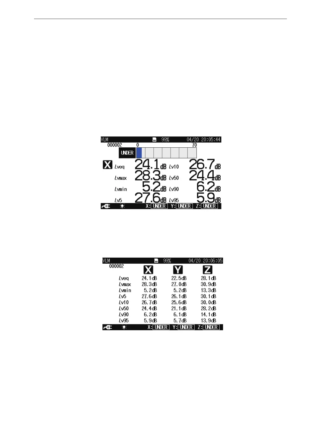 Pressing the X/Y/Z/XYZ key switches the vibration axis (channel) to be