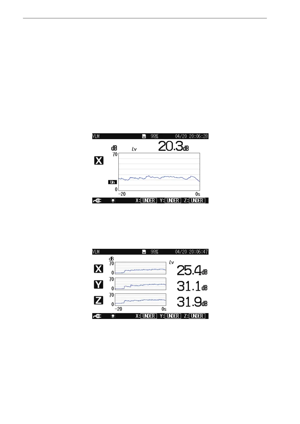 Pressing the X/Y/Z/XYZ key switches the vibration axis (channel) to be