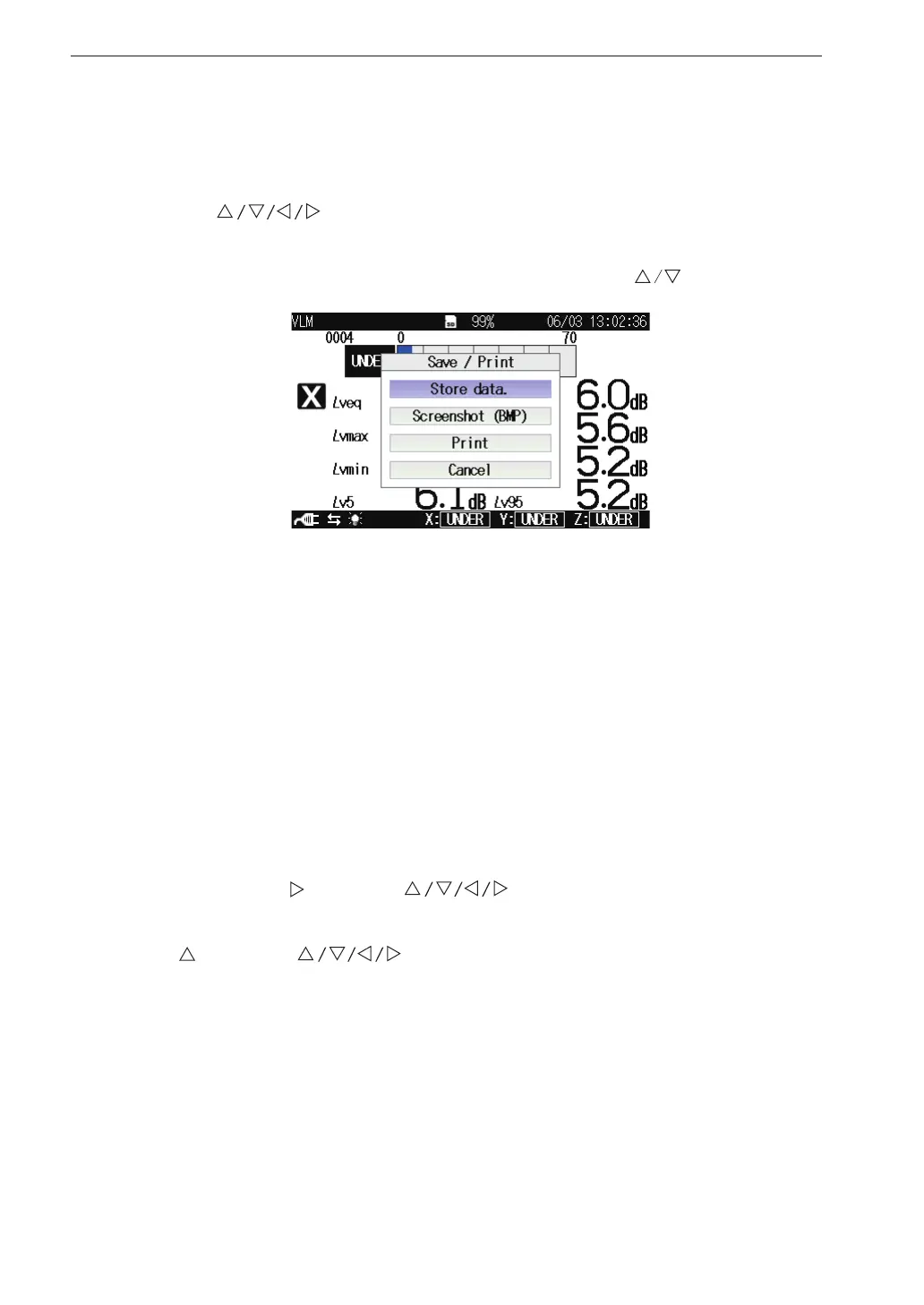 Saves the displayed measurement screen to the internal memory in BMP