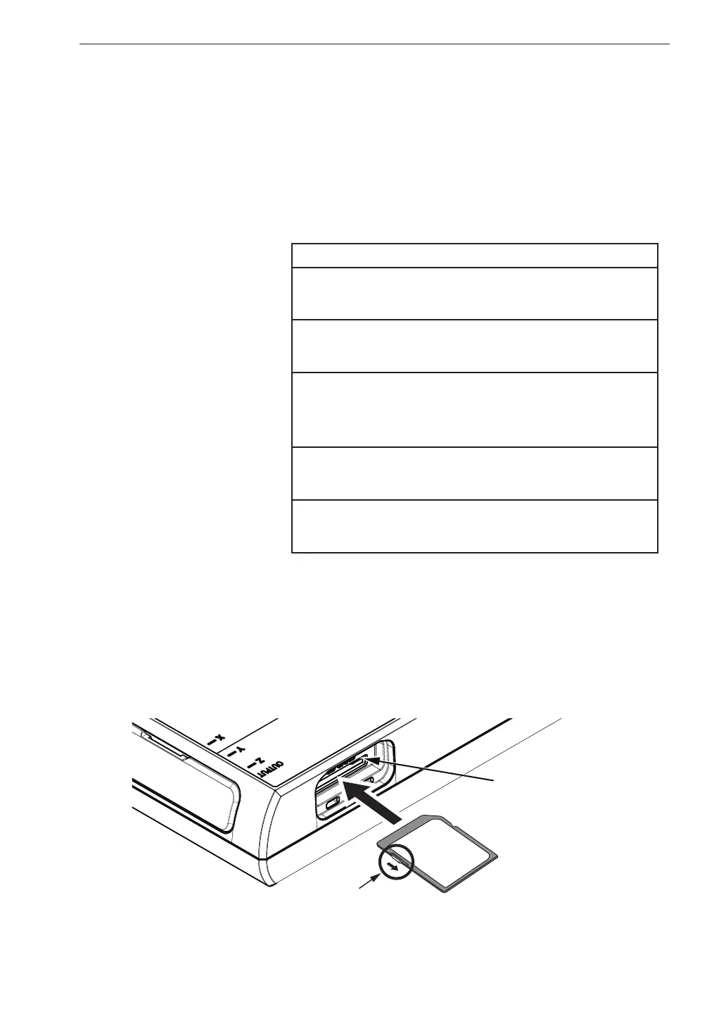 2. Insert the SD memory card into the card slot on the top of the unit with