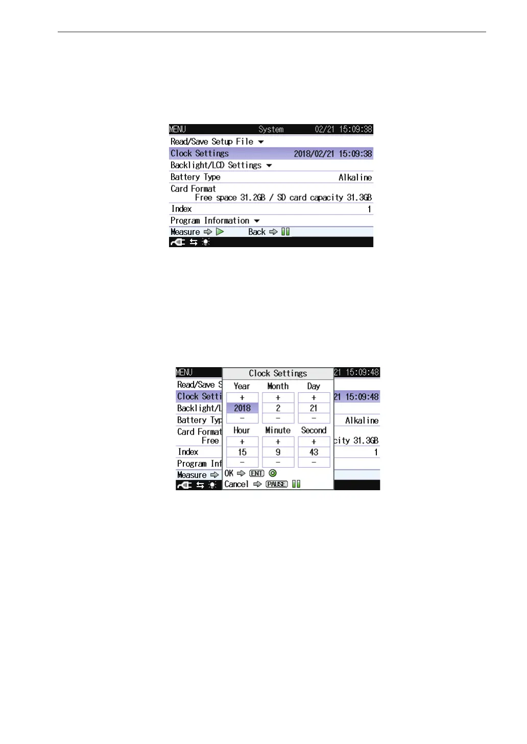 Clock settings screen