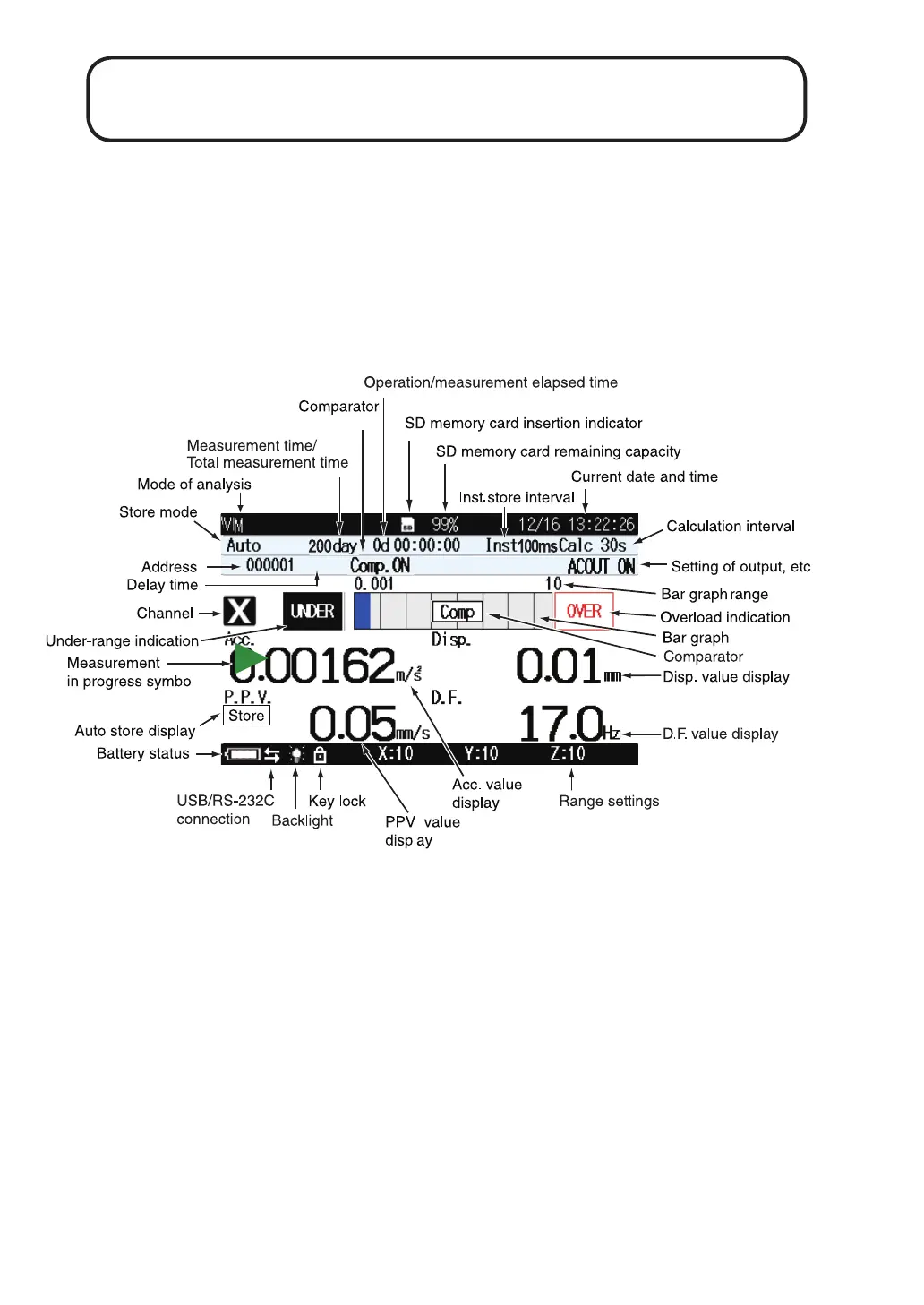 Rion VM-56 - Reading the Display; Measurement Screen Display