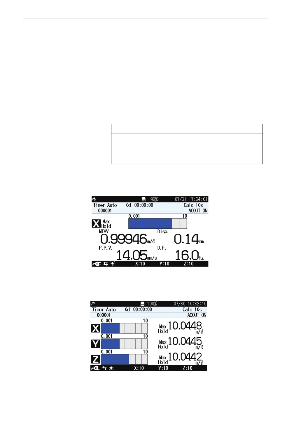 Pressing the X/Y/Z/XYZ key switches the vibration axis (channel) to be