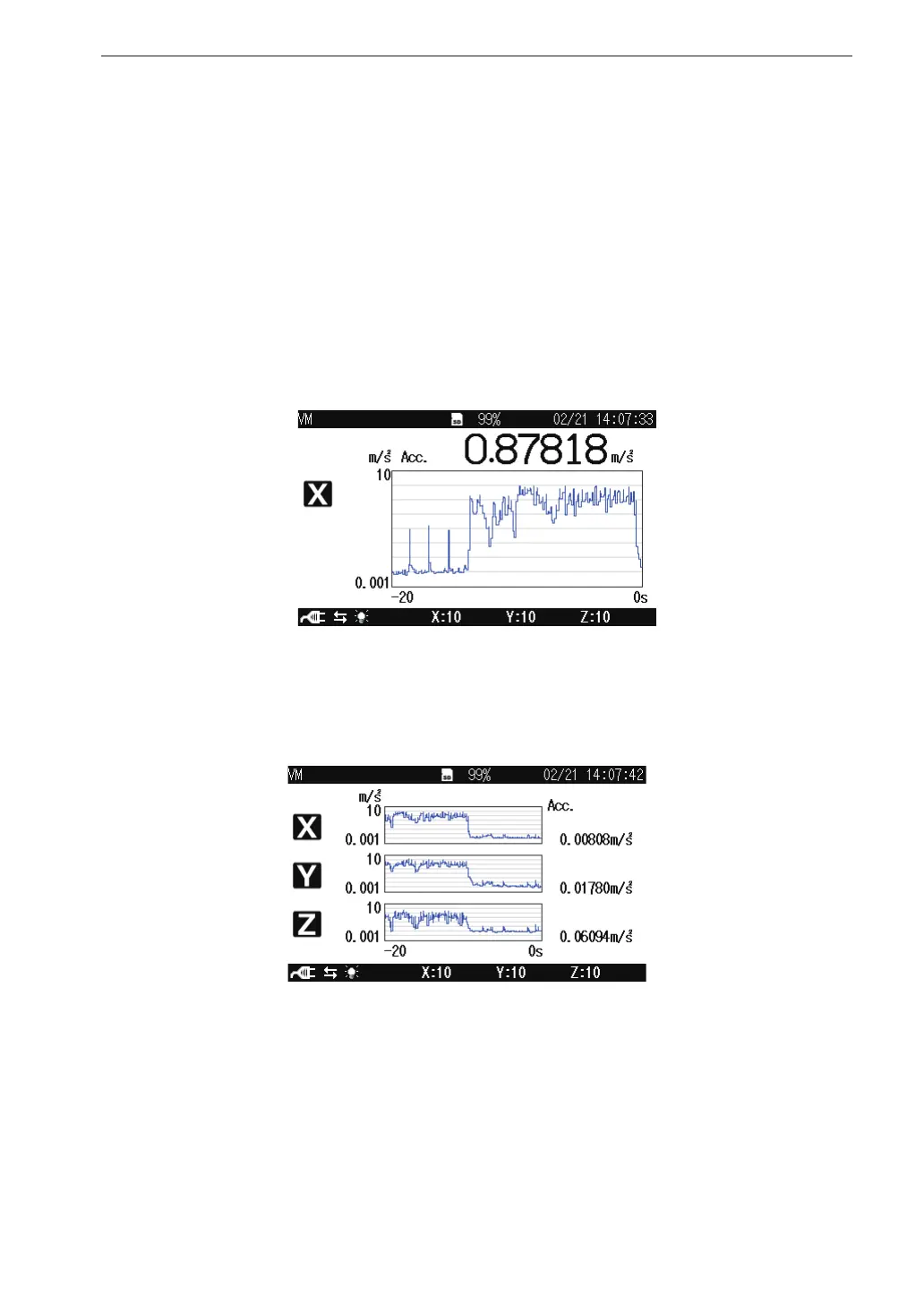 Pressing the X/Y/Z/XYZ key switches the vibration axis (channel) to be