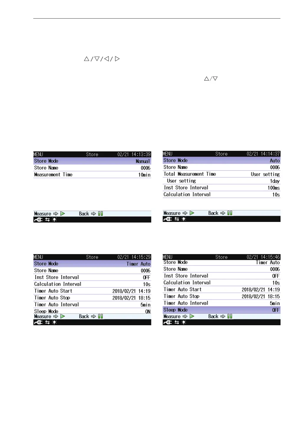 This screen sets the mode that stores the operation result data.