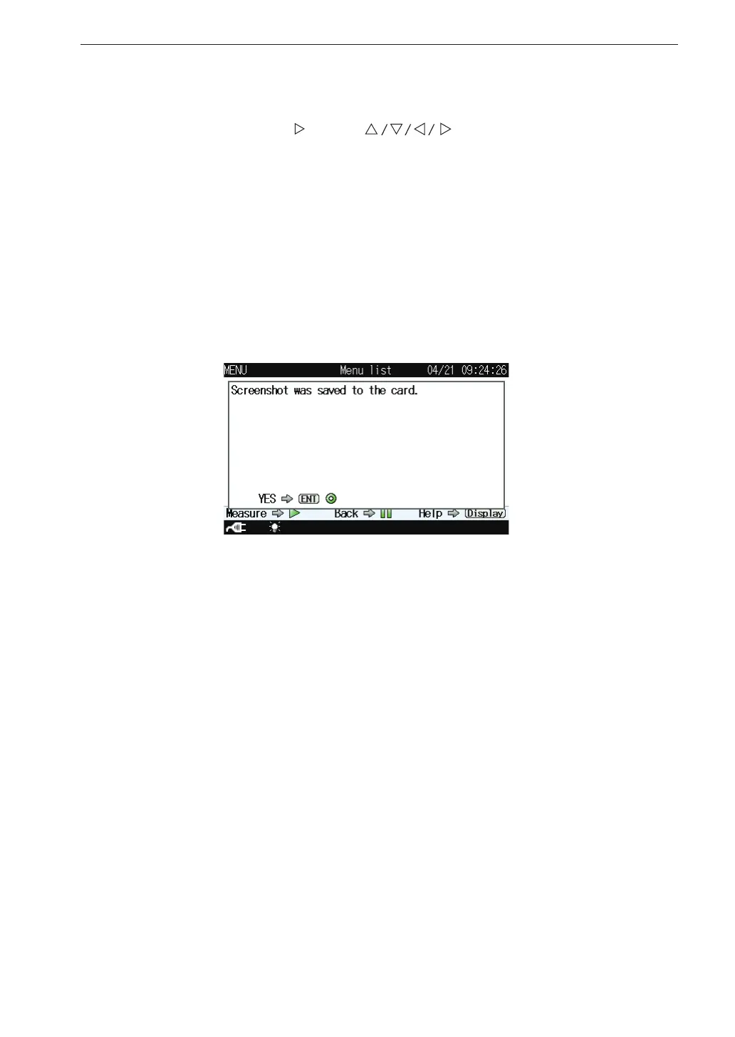 DISPLAY key, the “Screenshot was saved to the card” message is displayed