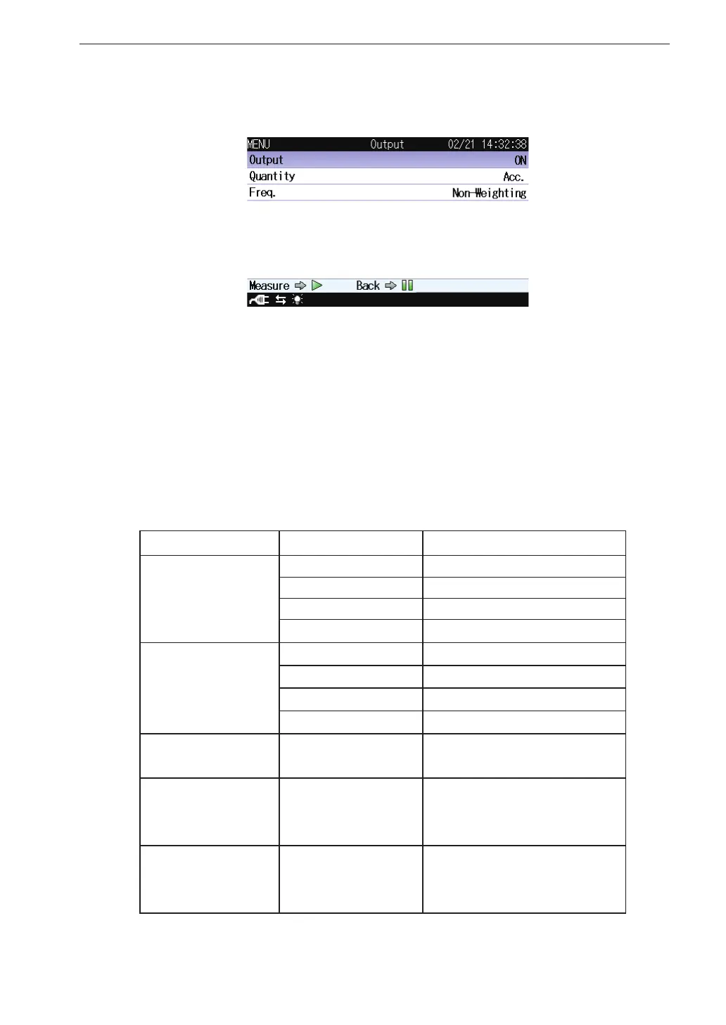 Below is a correspondence table between Measure setting and AC