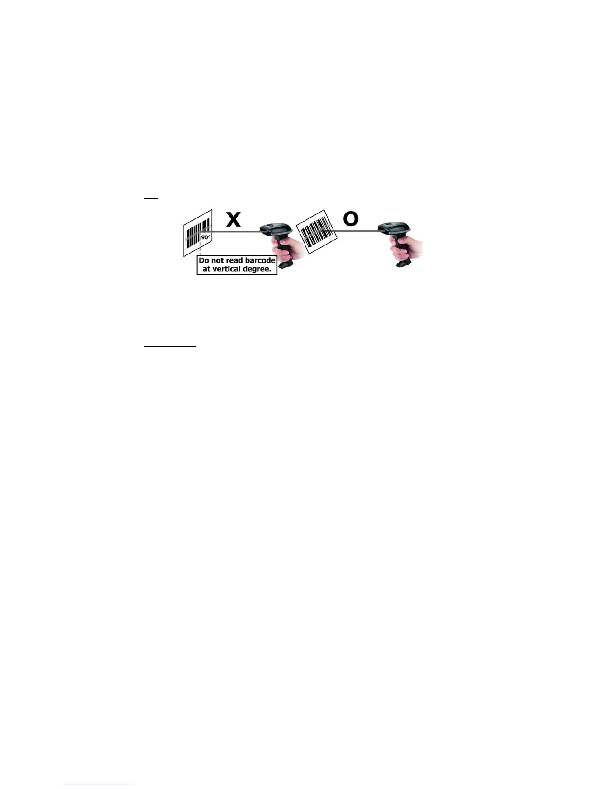 Do not hold the scanner directly over a barcode at 90˚. Scanning light bounces directly
