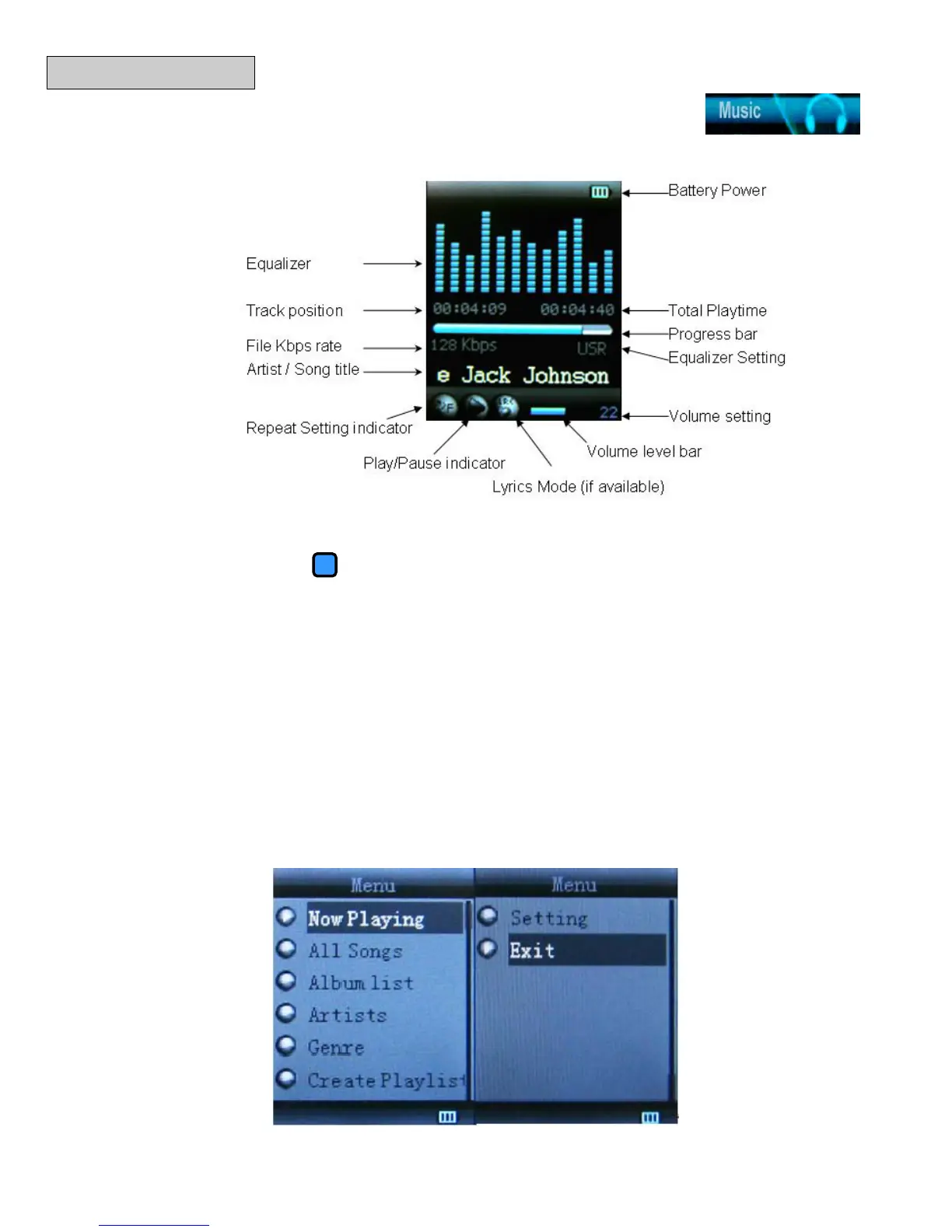 From the Main Menu, use the“◄” or “►” buttons and select Music.