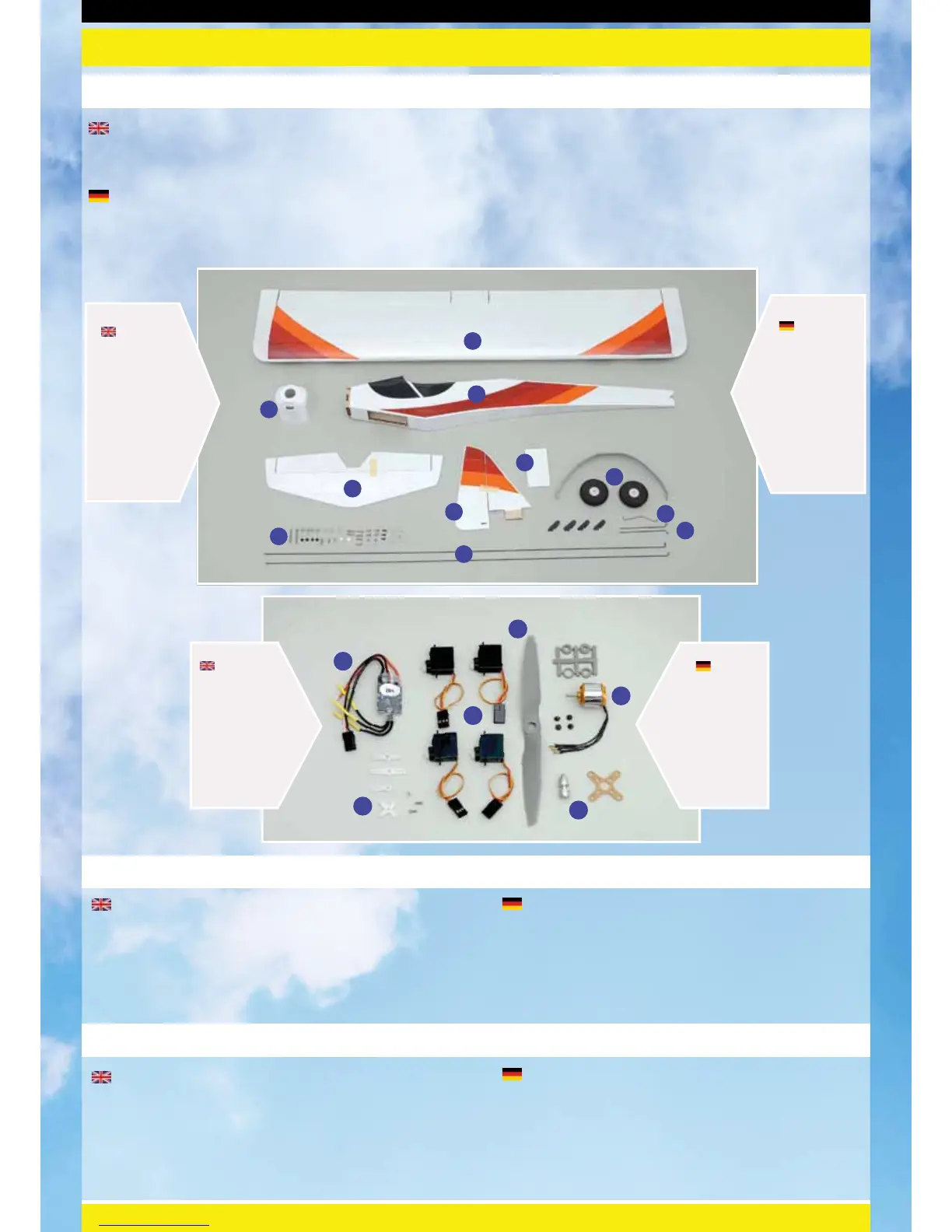 passenden 2S Akku und Sender mit Empfänger, um das Modell flugfertig zu machen. Bevor Sie mit der Montage beginnen,